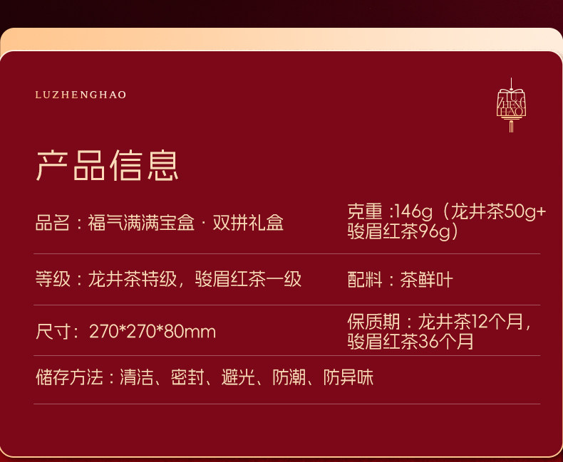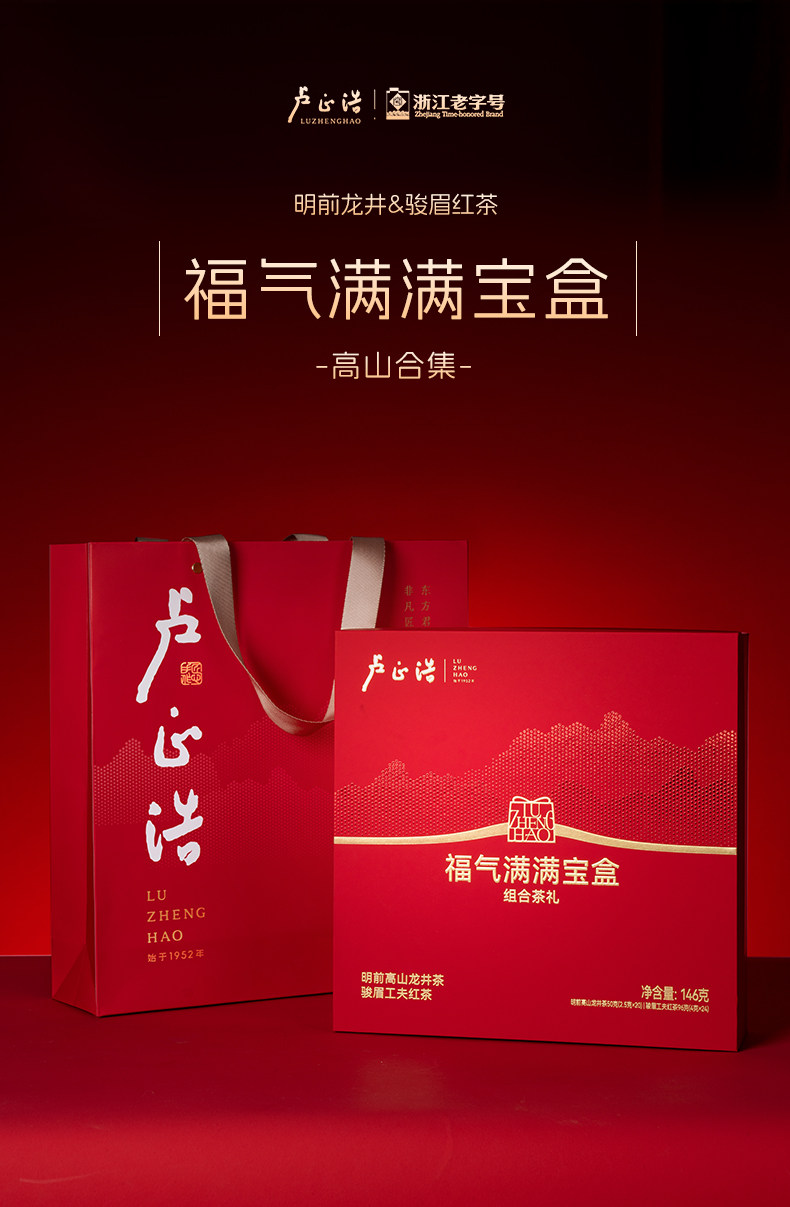 2025新茶卢正浩明前特级龙井茶骏眉工夫红茶组合茶叶礼盒送礼长辈