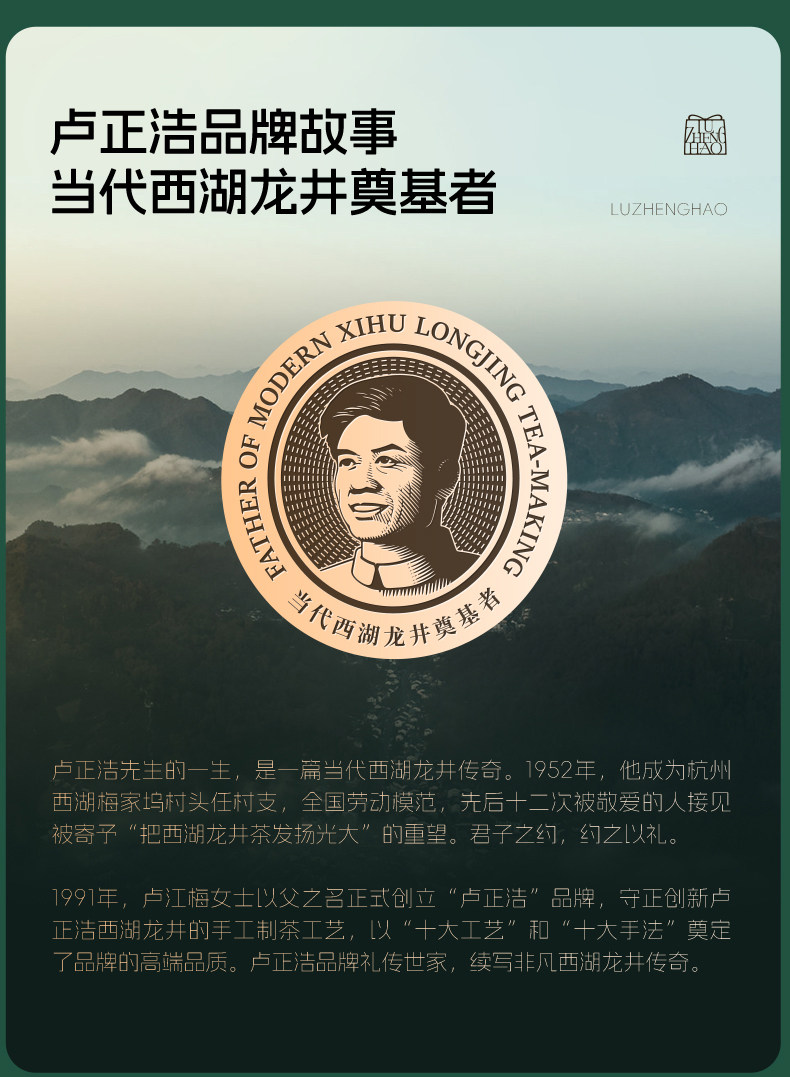 【2026年新茶上市】卢正浩明前特级头采花香战神花香龙井150克纸包绿茶茶叶 春茶