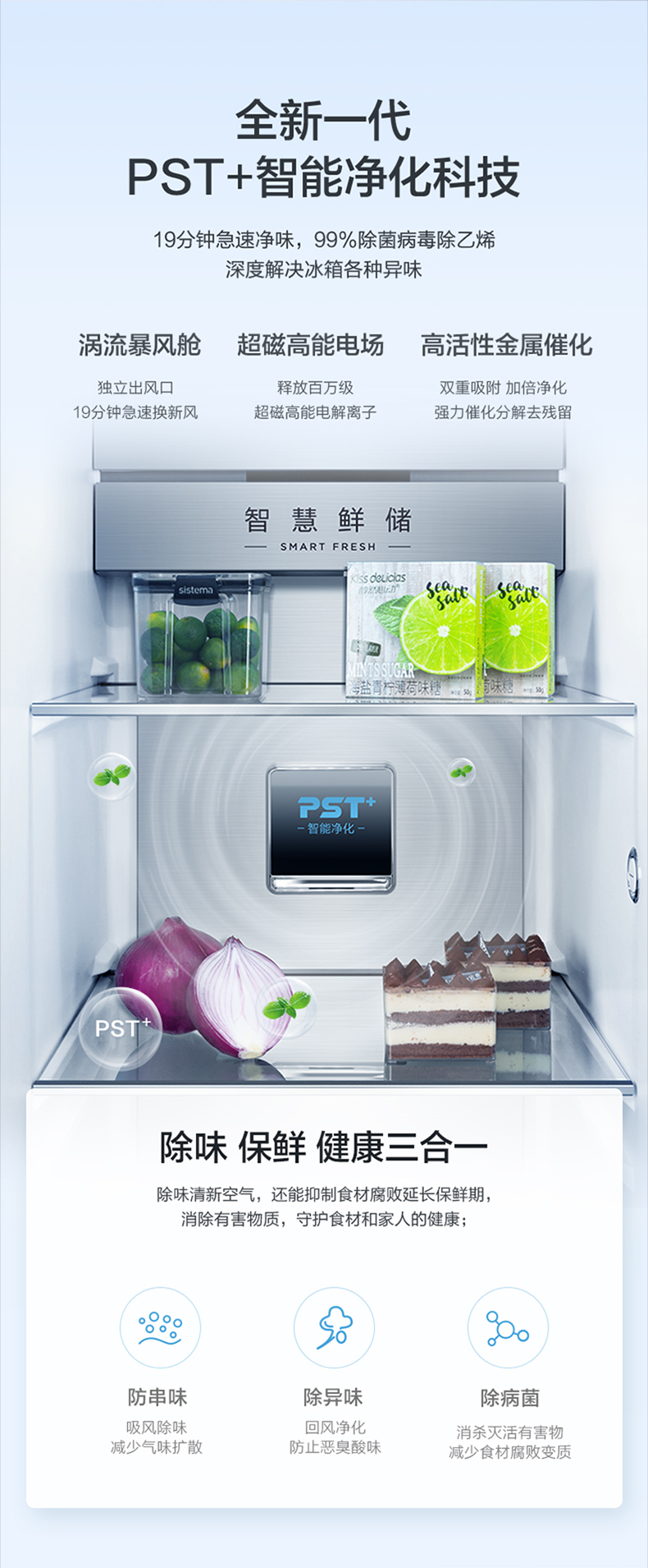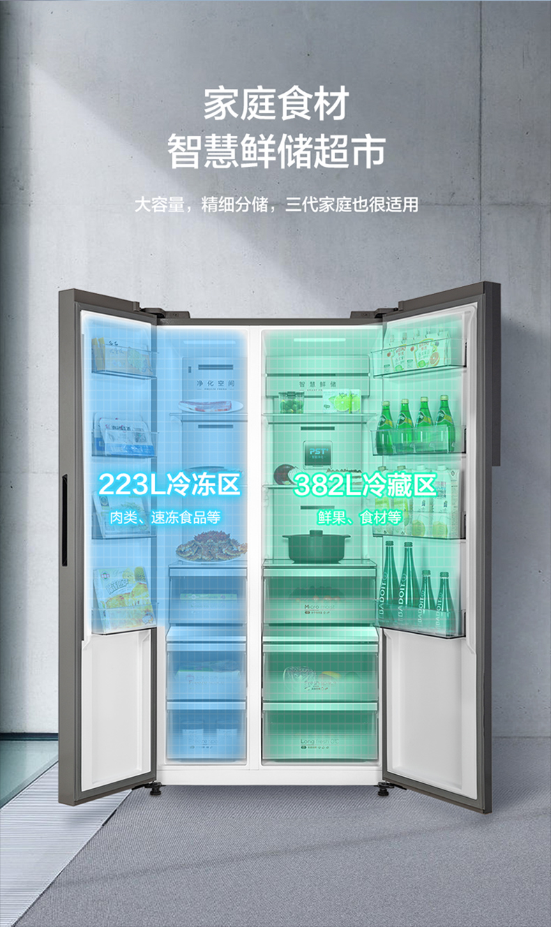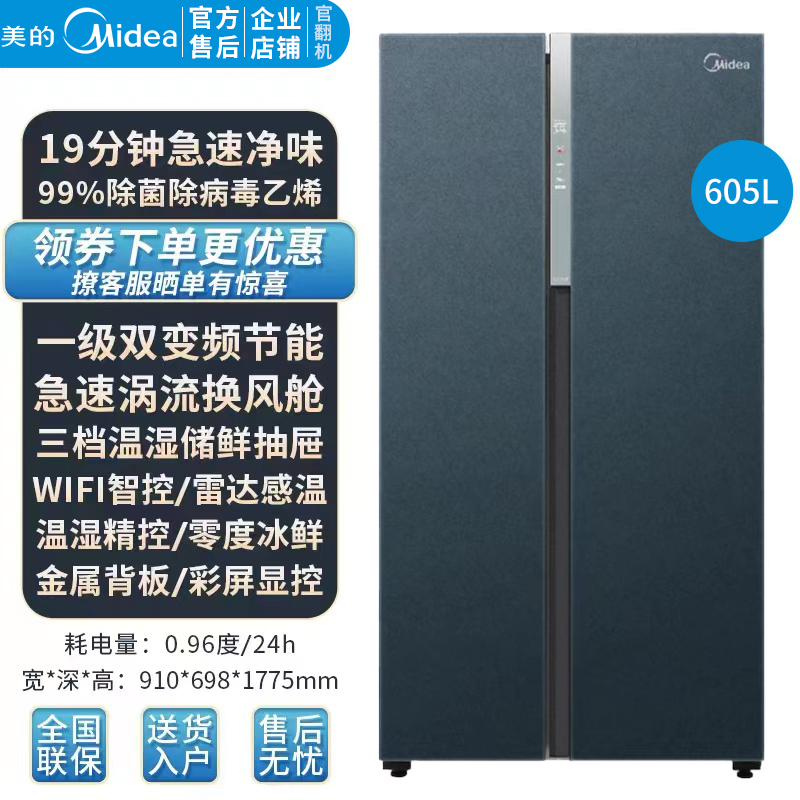Midea/美的 BCD-605WKGPZM风冷无霜一级变频净味家用对开双门冰箱