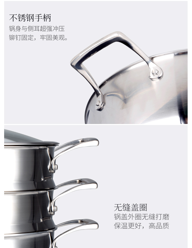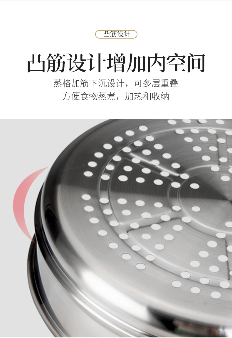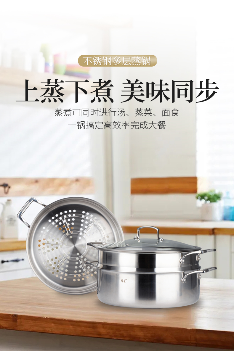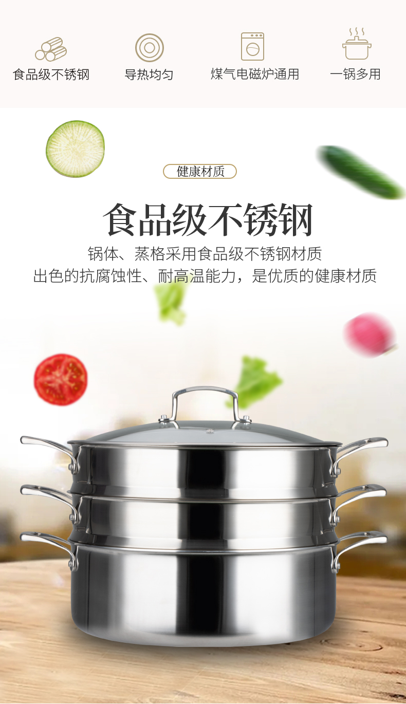 美思工房304不锈钢蒸锅适用电磁炉煤气灶三层钢加厚蒸煮锅32cm