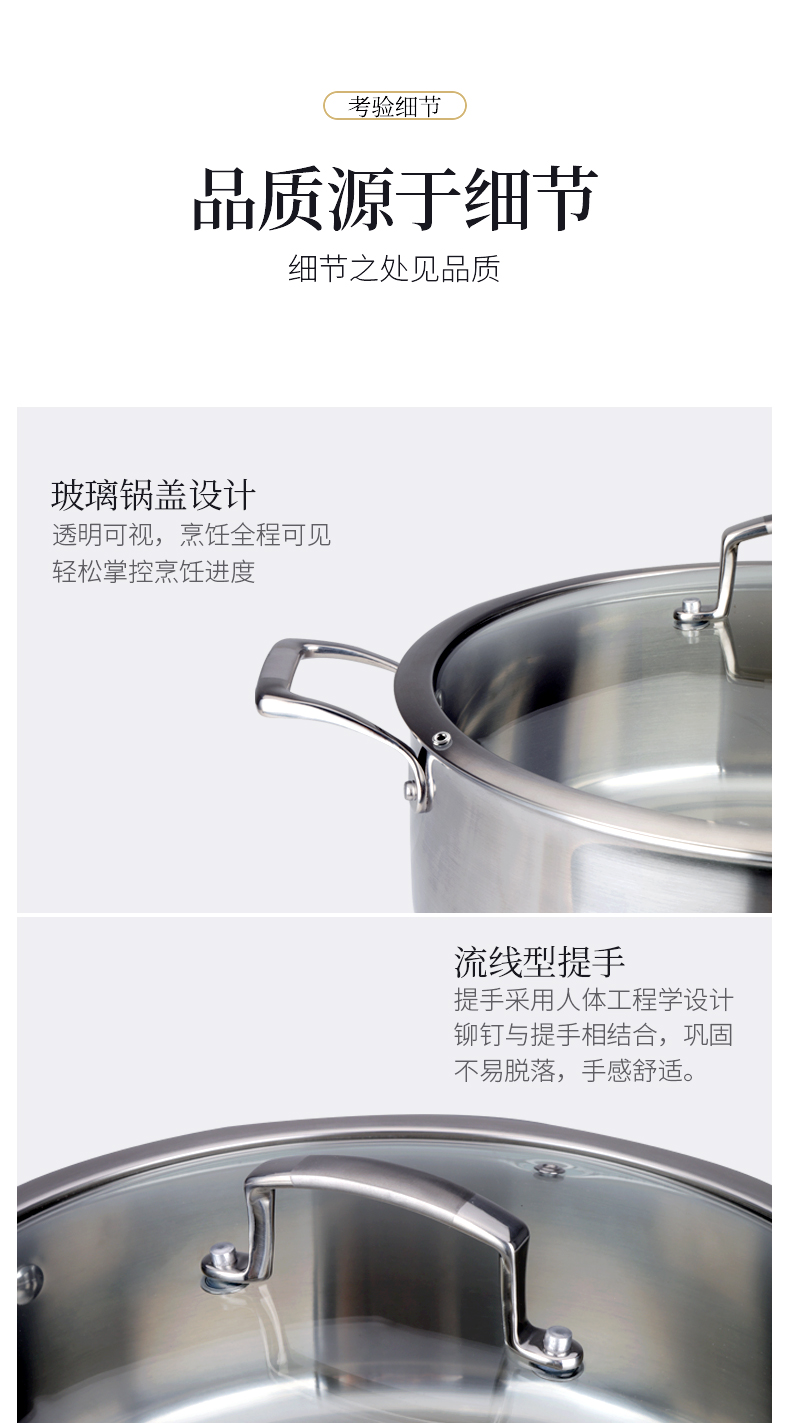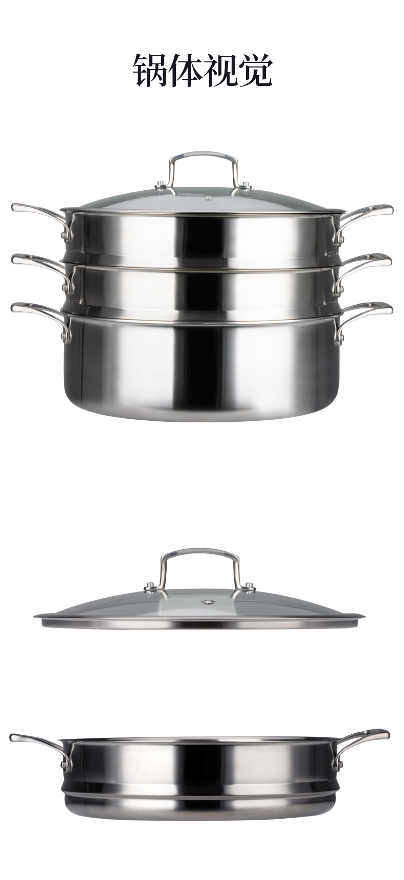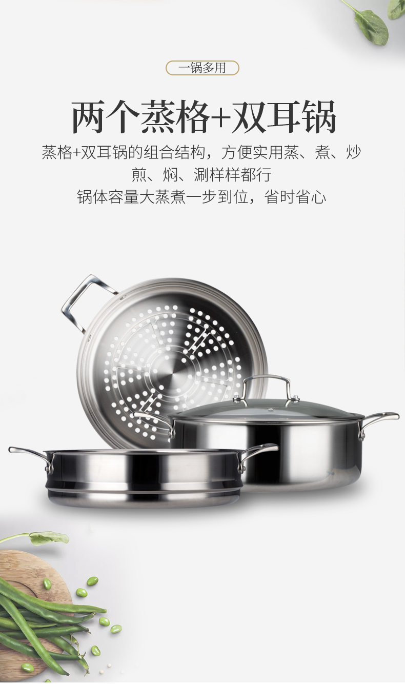 美思工房304不锈钢蒸锅适用电磁炉煤气灶三层钢加厚蒸煮锅32cm