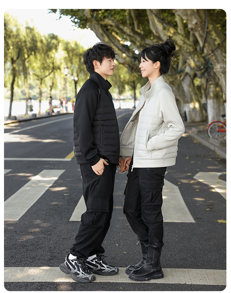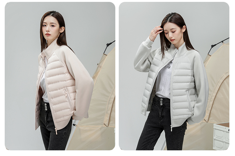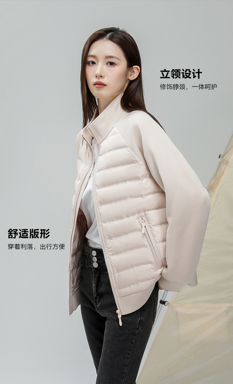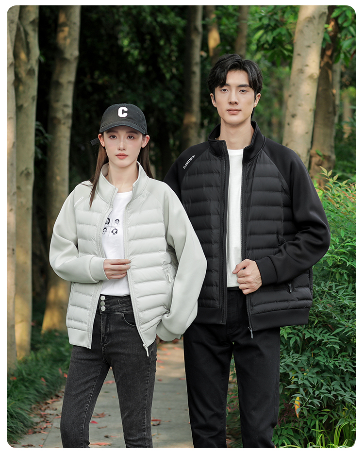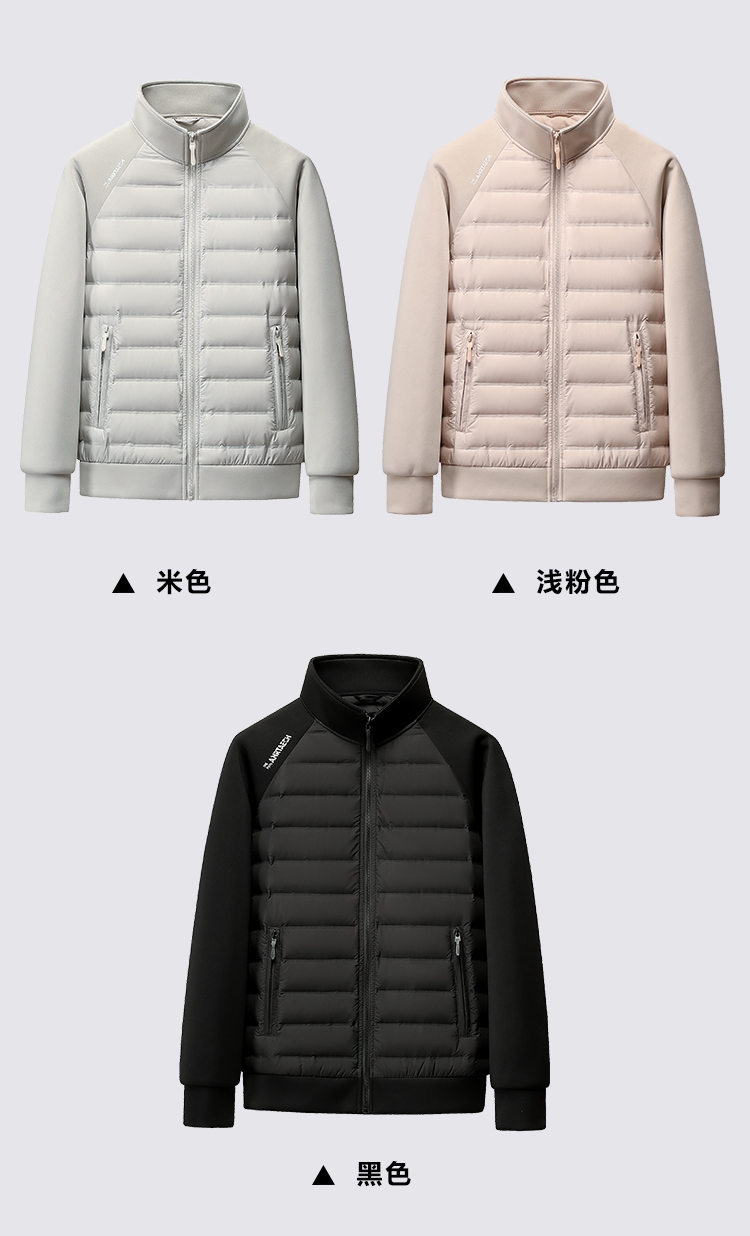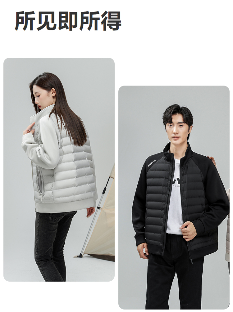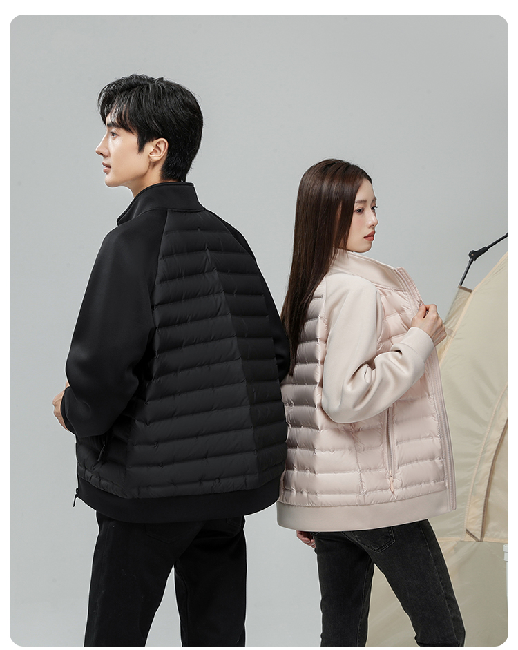 半身缘男女装 冬季插肩袖针织拼接轻薄情侣款立领羽绒服2529