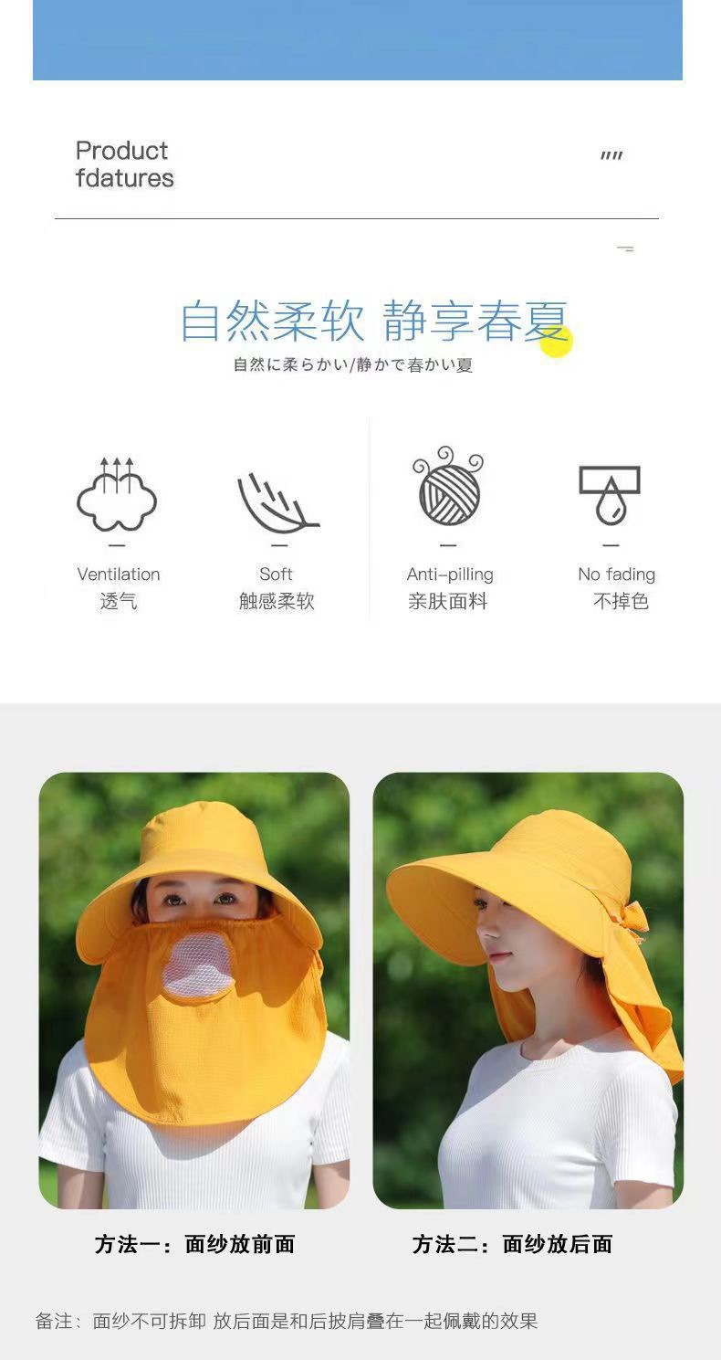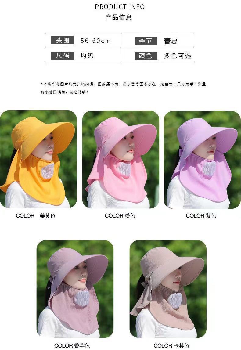 新款防晒帽防风防尘护脸护颈女骑车夏季遮阳帽户外工作田间采茶帽