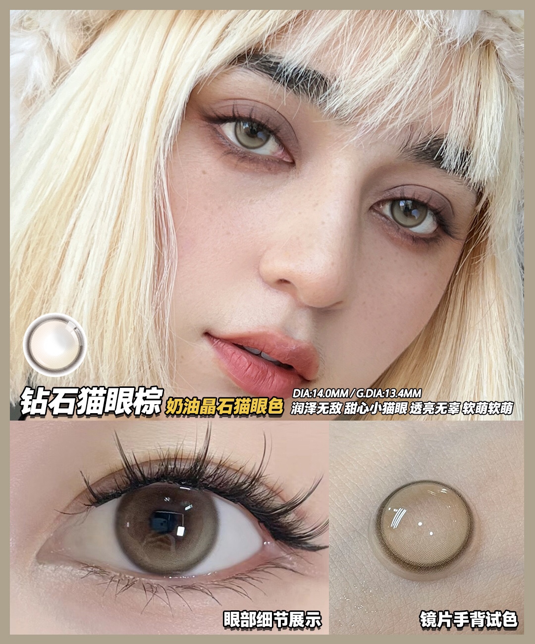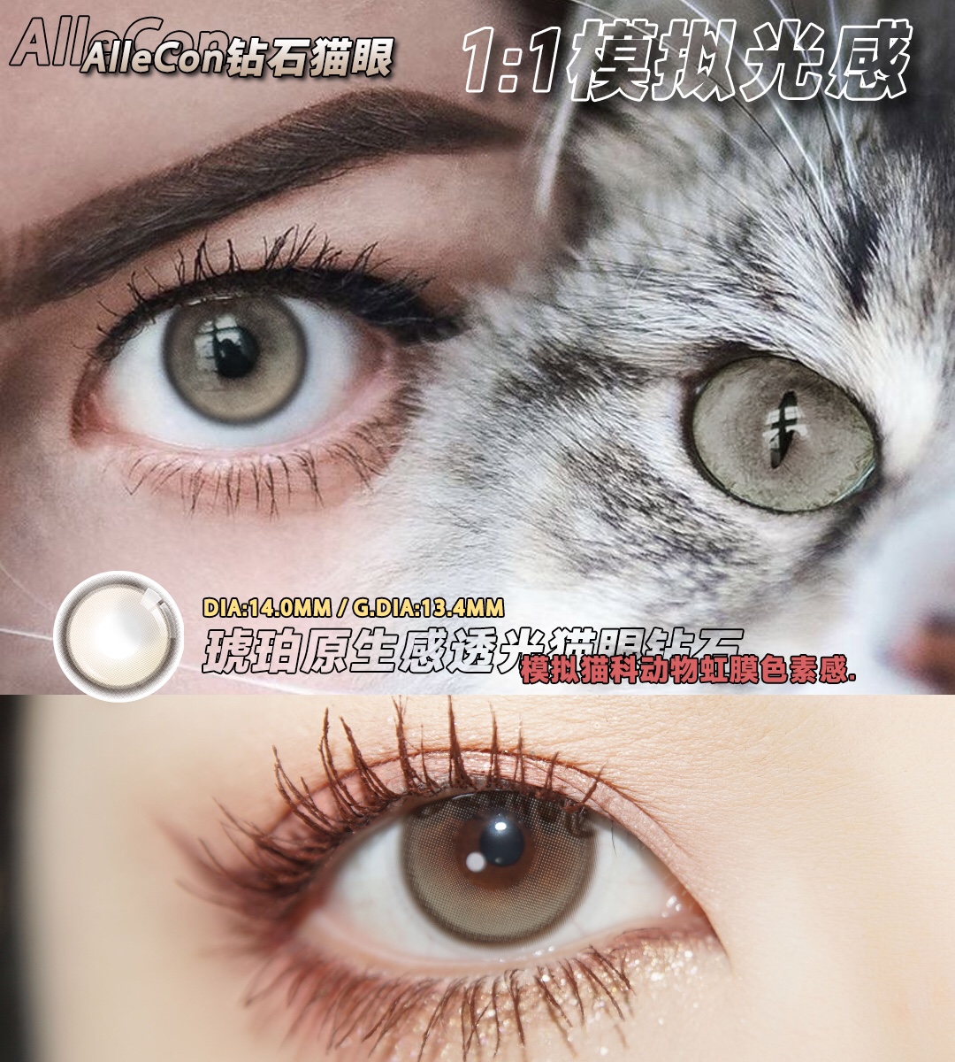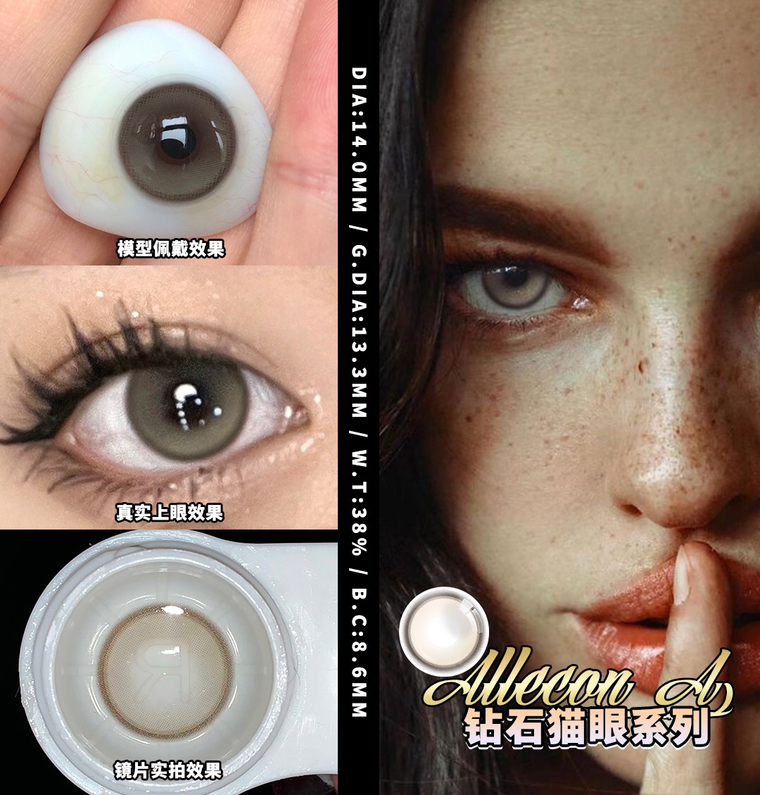 allecon 钻石猫眼棕 半年抛 2片14.0mm 着色13.4mm 基弧8.6 含水38% 韩国进口