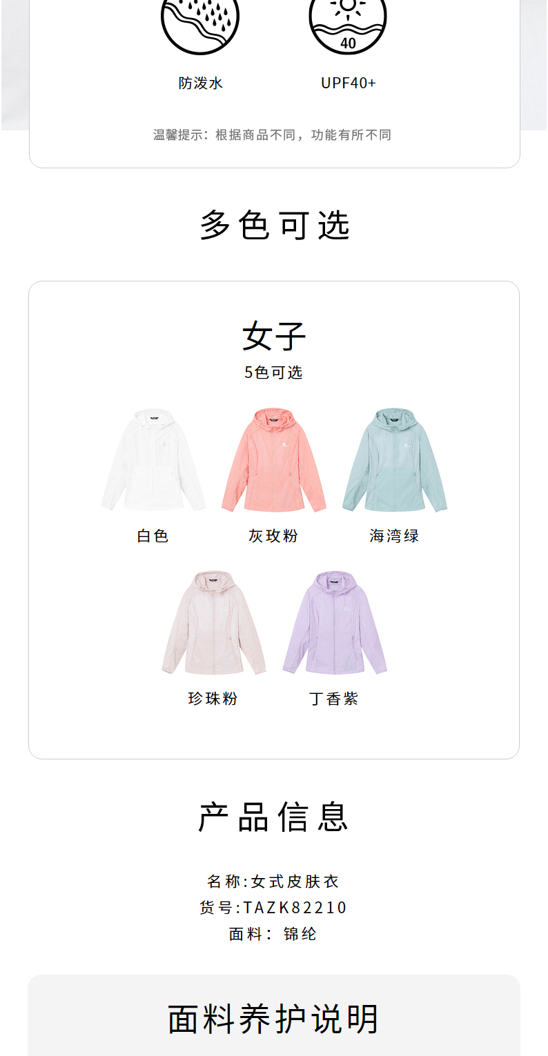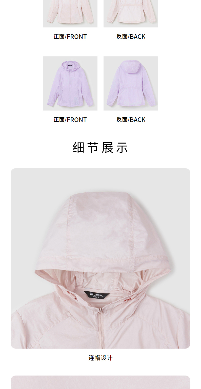 探路者22春夏新款女式防晒服防泼水户外舒适透气皮肤衣TAZK82210