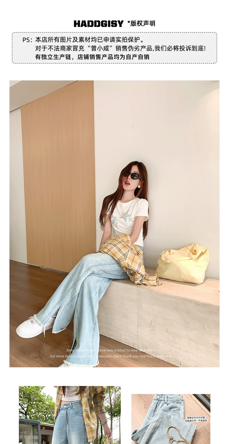 <曾小咸推荐>4.6现货秒杀!微信超特价!开叉直筒牛仔裤 日常209.99 立减110 秒杀99.99!