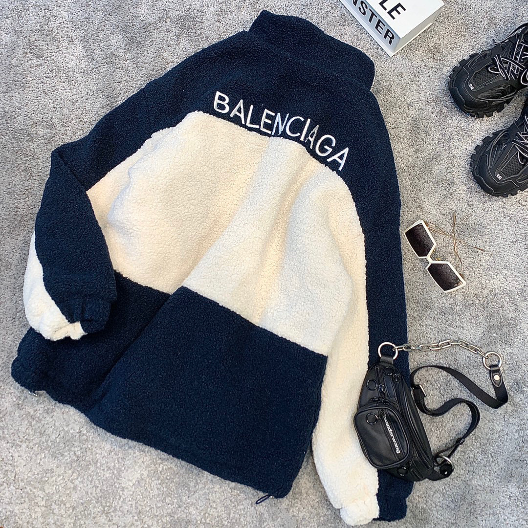 Balenciaga 20AW 拼色羊羔毛外套