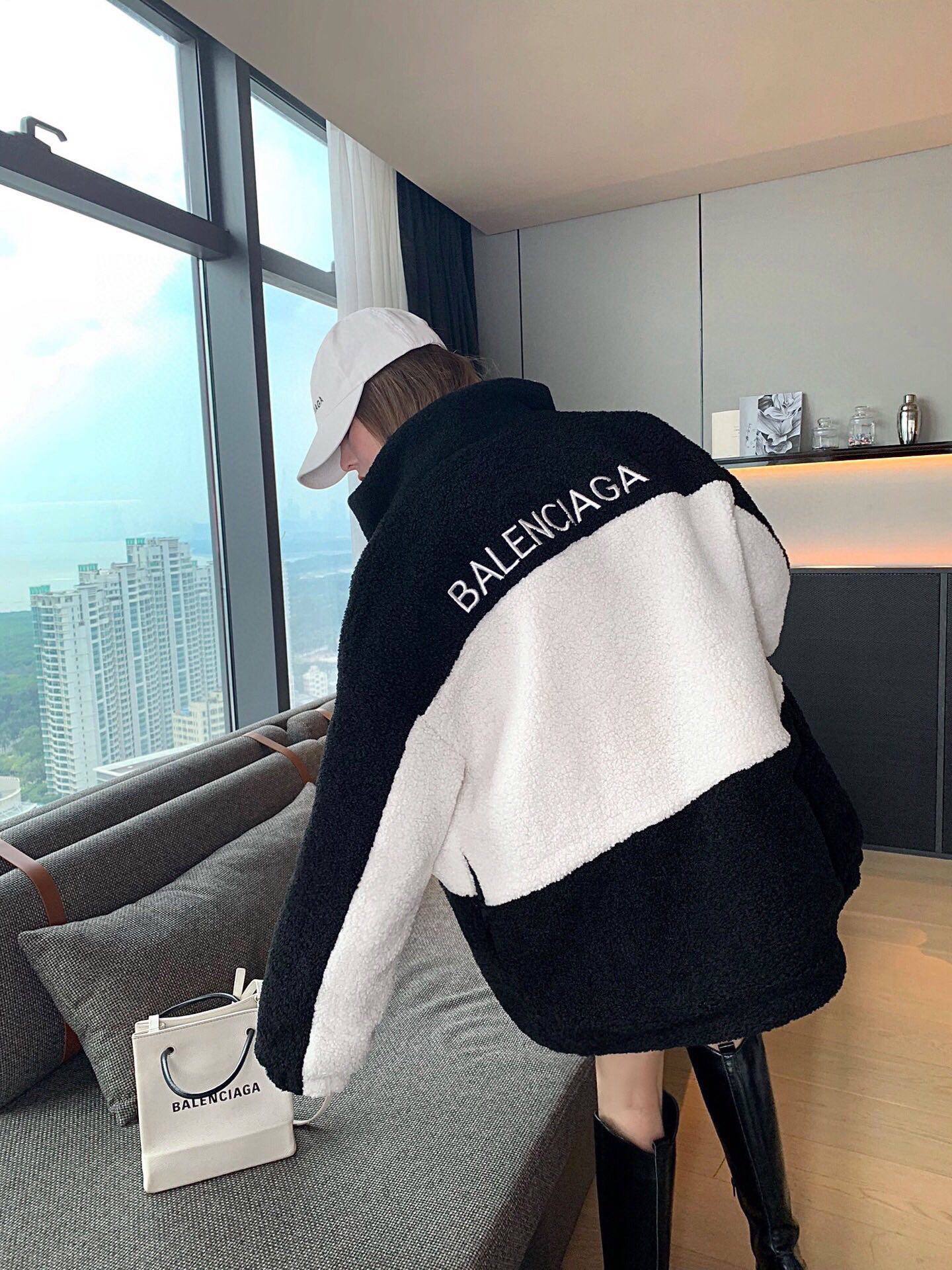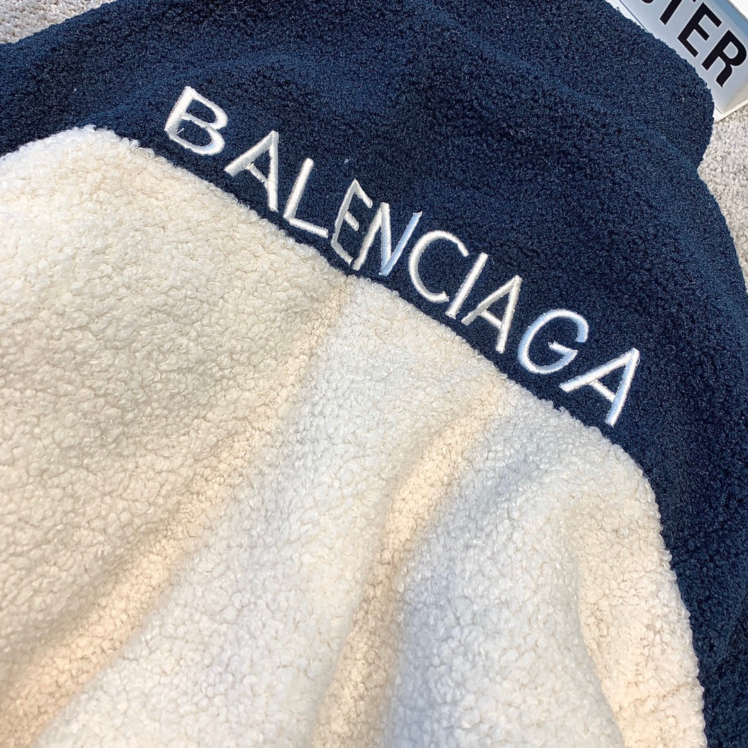 Balenciaga 20AW 拼色羊羔毛外套🆕超级好看的一件 白兰拼色太太高级了!前后字母都是进口机器刺绣工艺⚠️精致饱满 立体感足、内里棱格形状 搭配牛仔裤 运动裤都好看 秋冬一件管够!os宽松版型男女都🉑️轻松驾驭!SIZE:SML