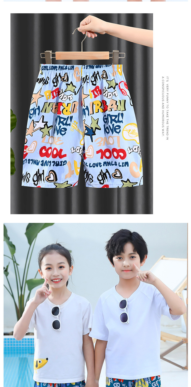 【夏日沙滩,童心荡漾】五分裤宽松舒适,男女儿童皆宜。轻松自在,没有束缚。棉绸面料透气,让孩子在炎炎夏日中舒爽玩耍!