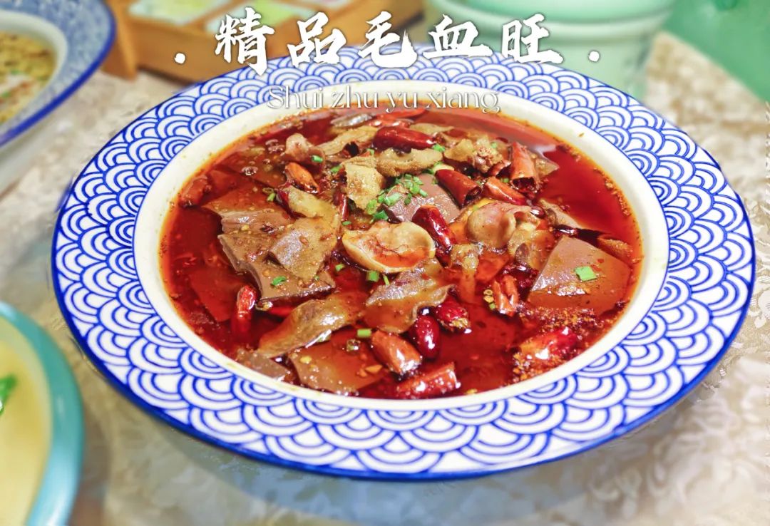 汤汁红亮、麻辣鲜香的毛血旺