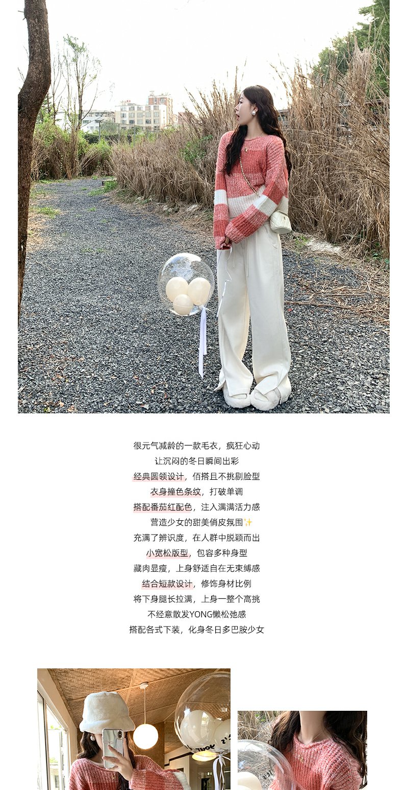 <曾小咸推荐>慵懒风宽松红条纹毛衣
