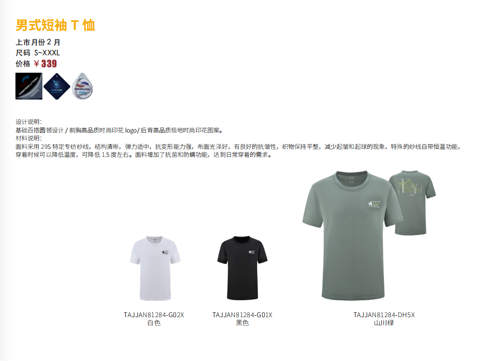 探路者男式棉T恤TAJJAN81284