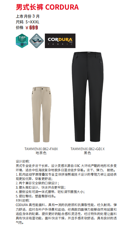 探路者CORDURA男式徒步长裤TAMMEN81062