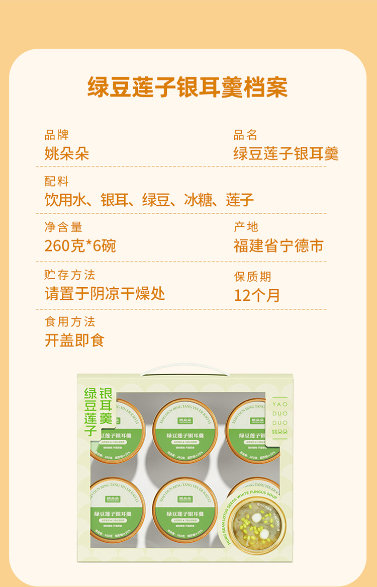 姚朵朵绿豆莲子银耳羹260g*6碗