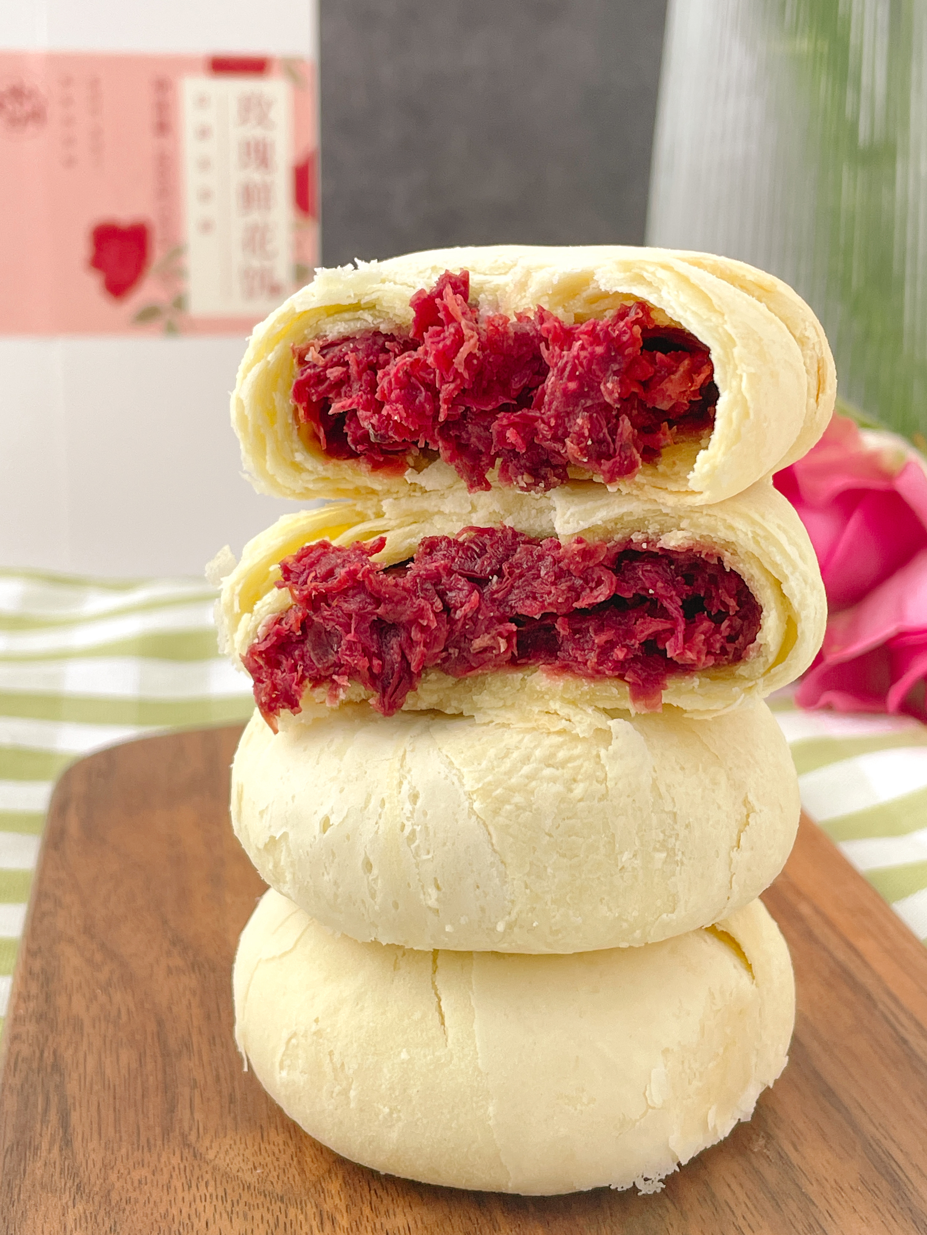 【美味零食丨食味的初相 玫瑰鲜花饼 50g*8枚*1/2盒 】精选优质食材制作,色泽鲜亮香味醇厚,层层起酥,饼皮蓬松内馅清新甜糯,咬一口满口花香,两种口味可选