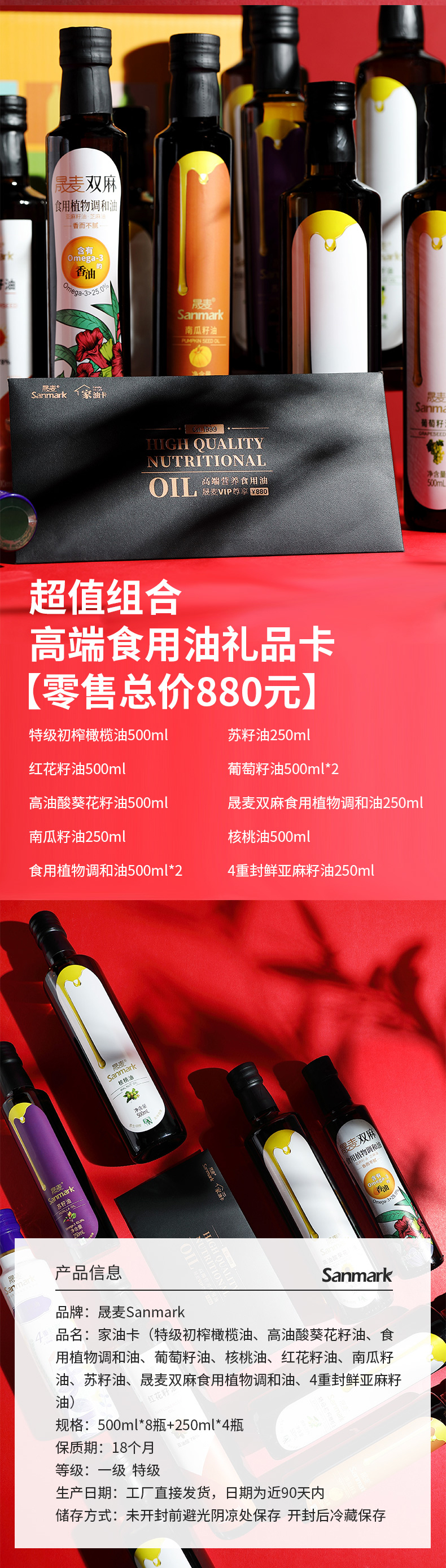 【已下架】积分换购 | 晟麦 家油卡 精选12瓶油 10种风味 畅享全年[福利品]