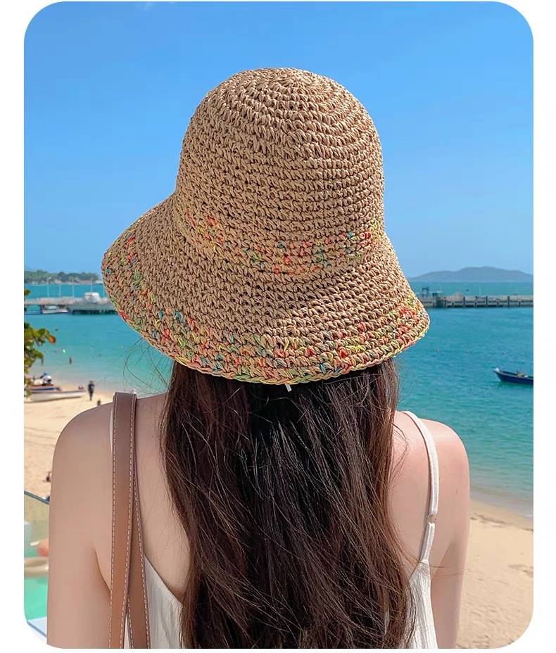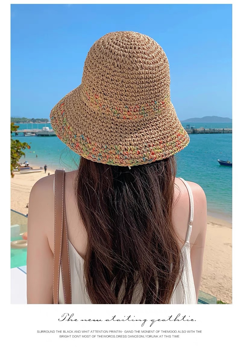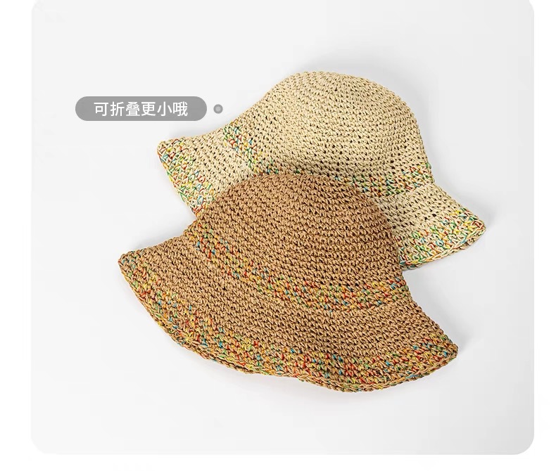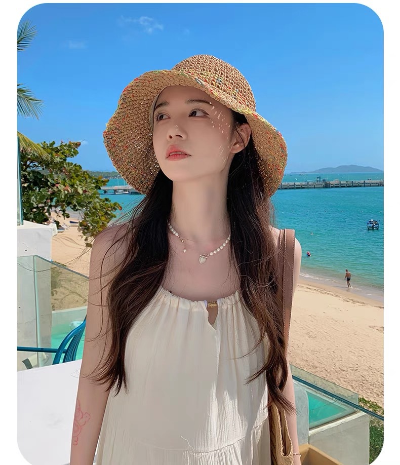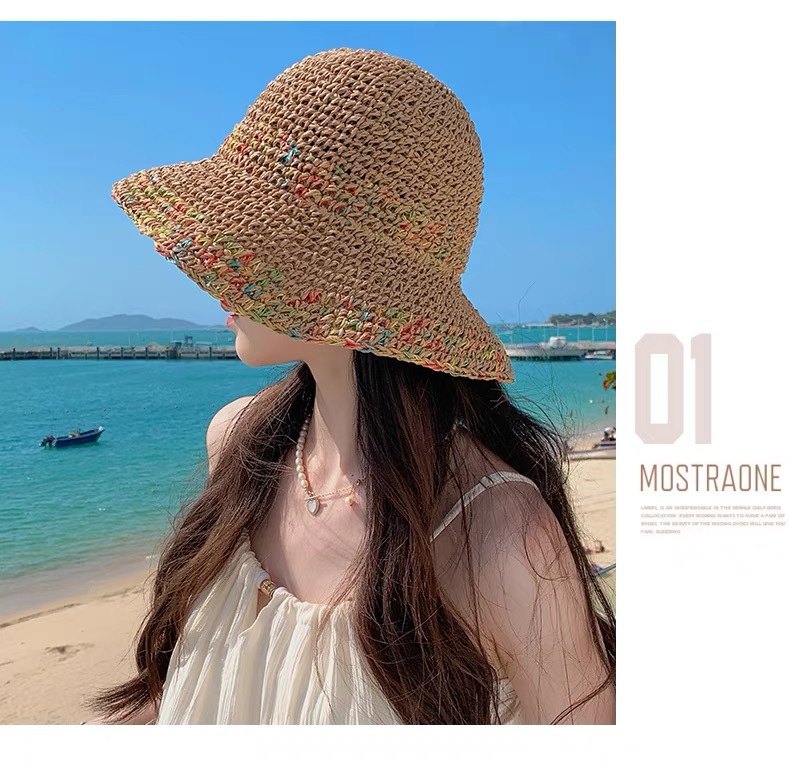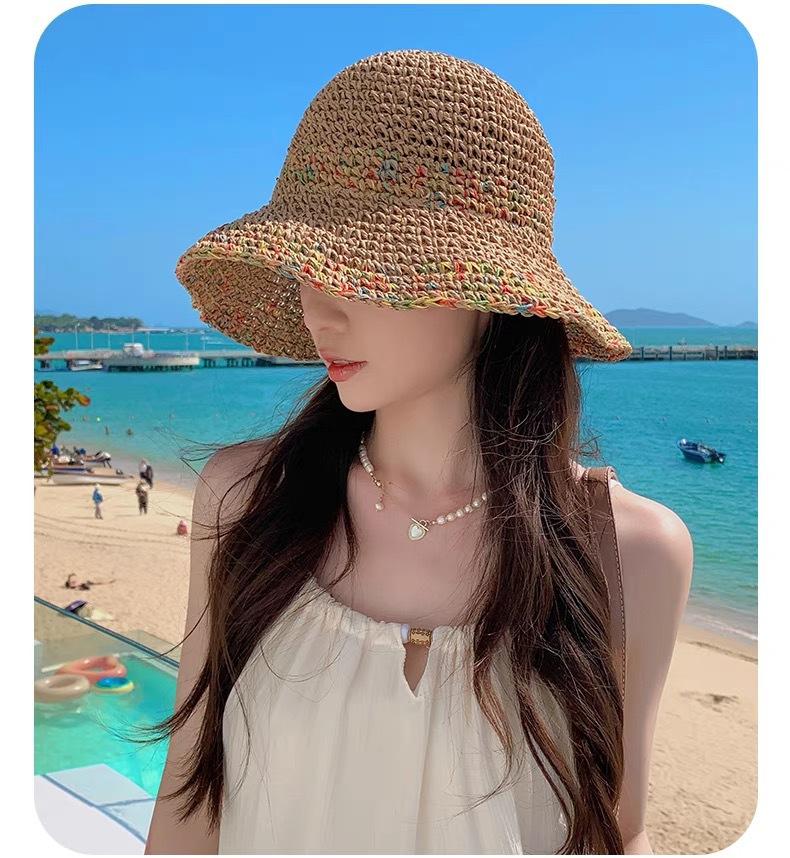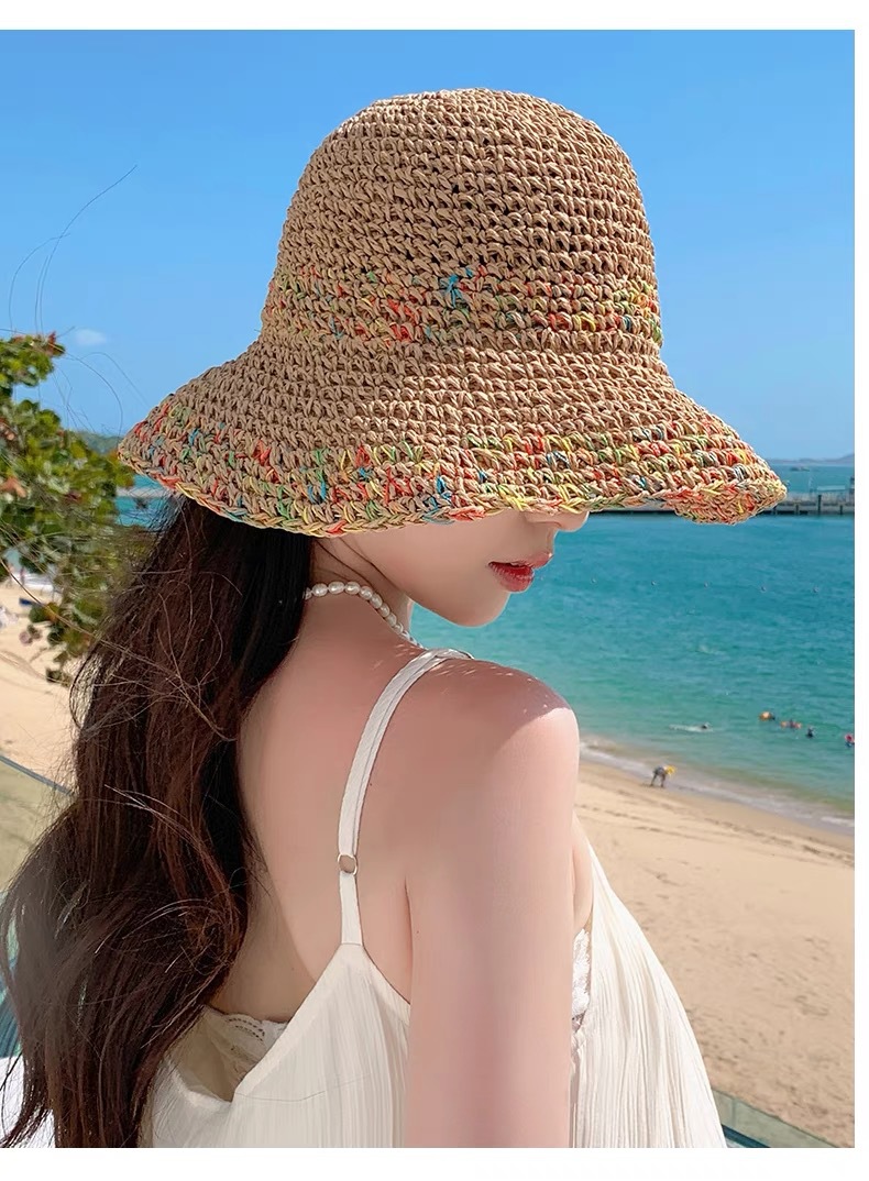 夏季镂空防晒遮阳帽透气沙滩帽彩色海边度假风宽檐编织渔夫草帽女