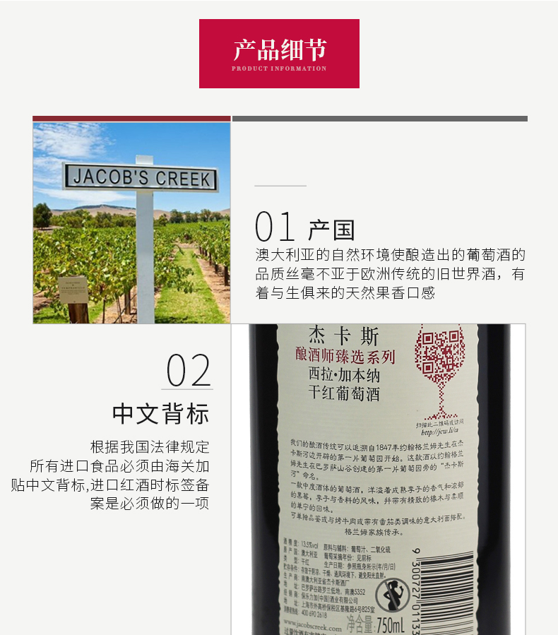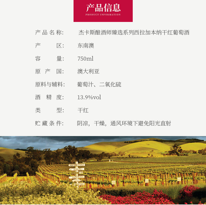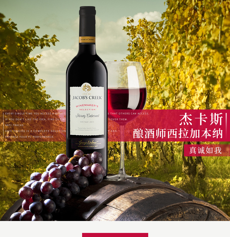 杰卡斯 酿酒师精选 西拉加本纳红葡萄酒 澳洲原装进口红酒 750ml