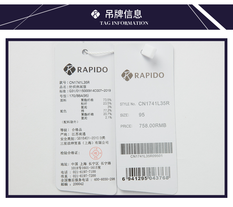 RAPIDO雳霹道2021秋季男士弹性撞色圆领套头长袖卫衣CN1741L365