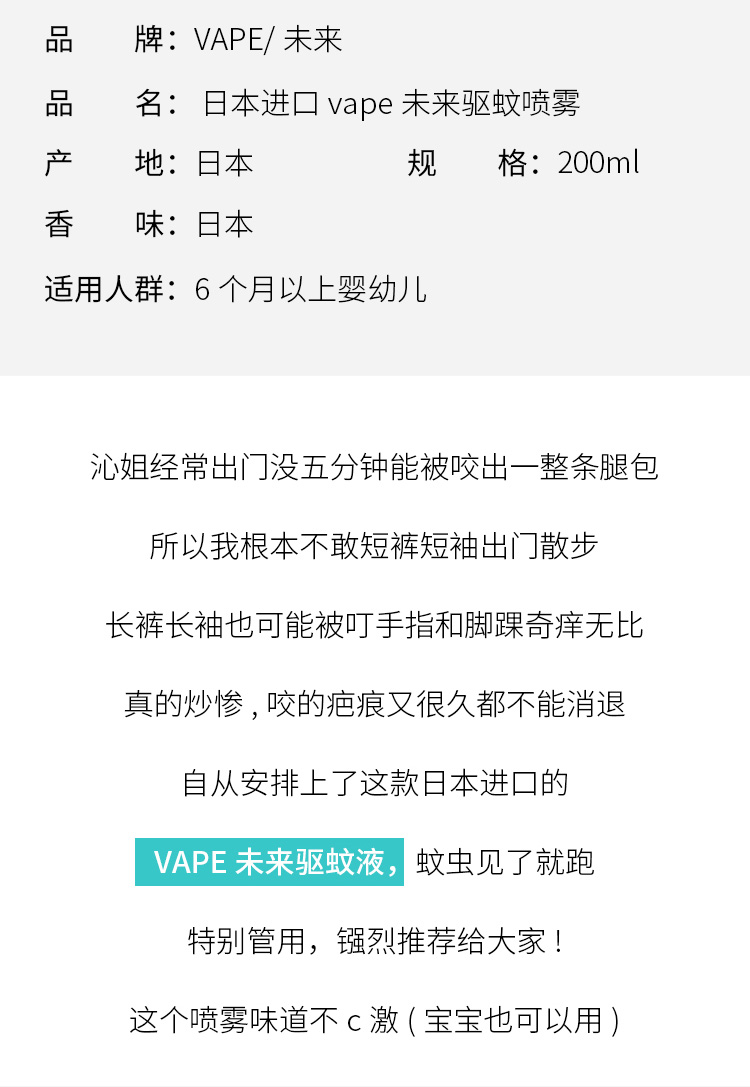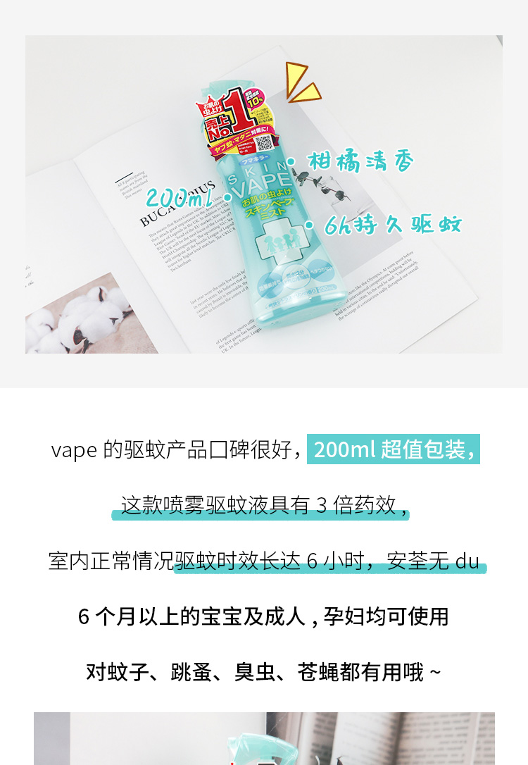 日本Vape驱蚊喷雾200ml 绿色/粉色、两款可选
