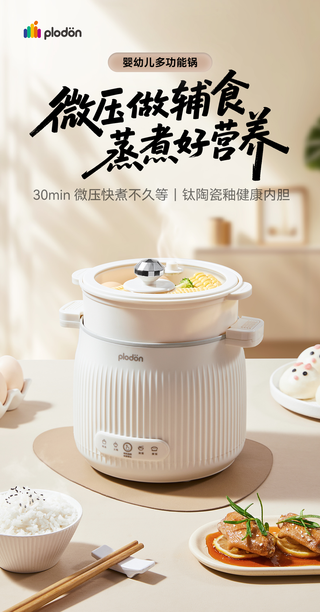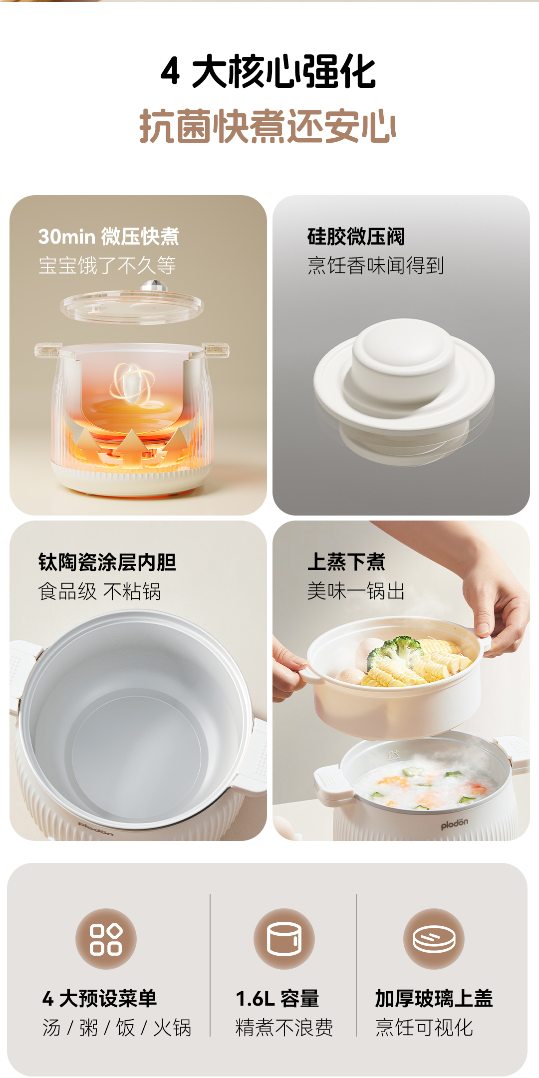 浦利顿婴儿微压电炖陶瓷釉宝宝专用电饭煲BB煮粥PLD-MC-03