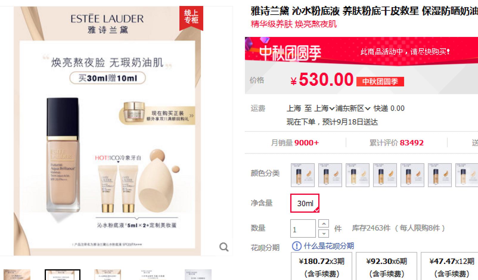 【商品名称】雅诗兰黛 沁水粉底液30ML