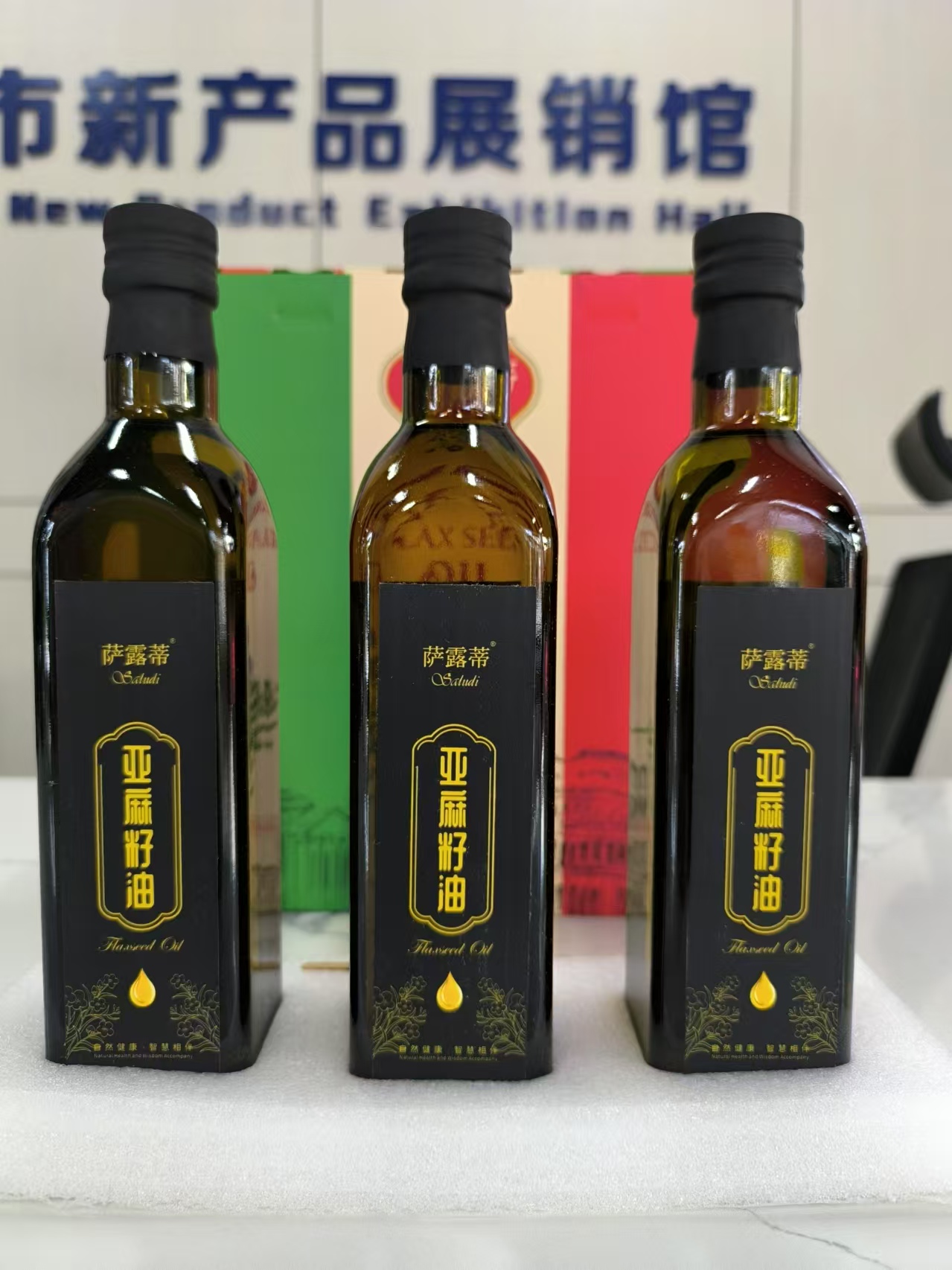 【榕膳堂萨露蒂】冷榨亚麻籽油500ml*3瓶黑金瓶礼盒装冷榨锁鲜