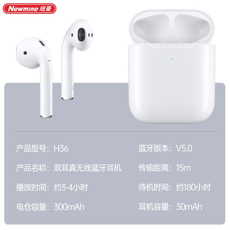 纽曼蓝牙耳机TWS耳机H36白色 商品缩略图0 纽曼蓝牙耳机TWS耳机H36白色 商品缩略图1 纽曼蓝牙耳机TWS耳机H36白色 商品缩略图2 纽曼蓝牙耳机TWS耳机H36白色 商品缩略图3 纽曼蓝牙耳机TWS耳机H36白色 商品缩略图4 纽曼蓝牙耳机TWS耳机H36白色 商品缩略图5