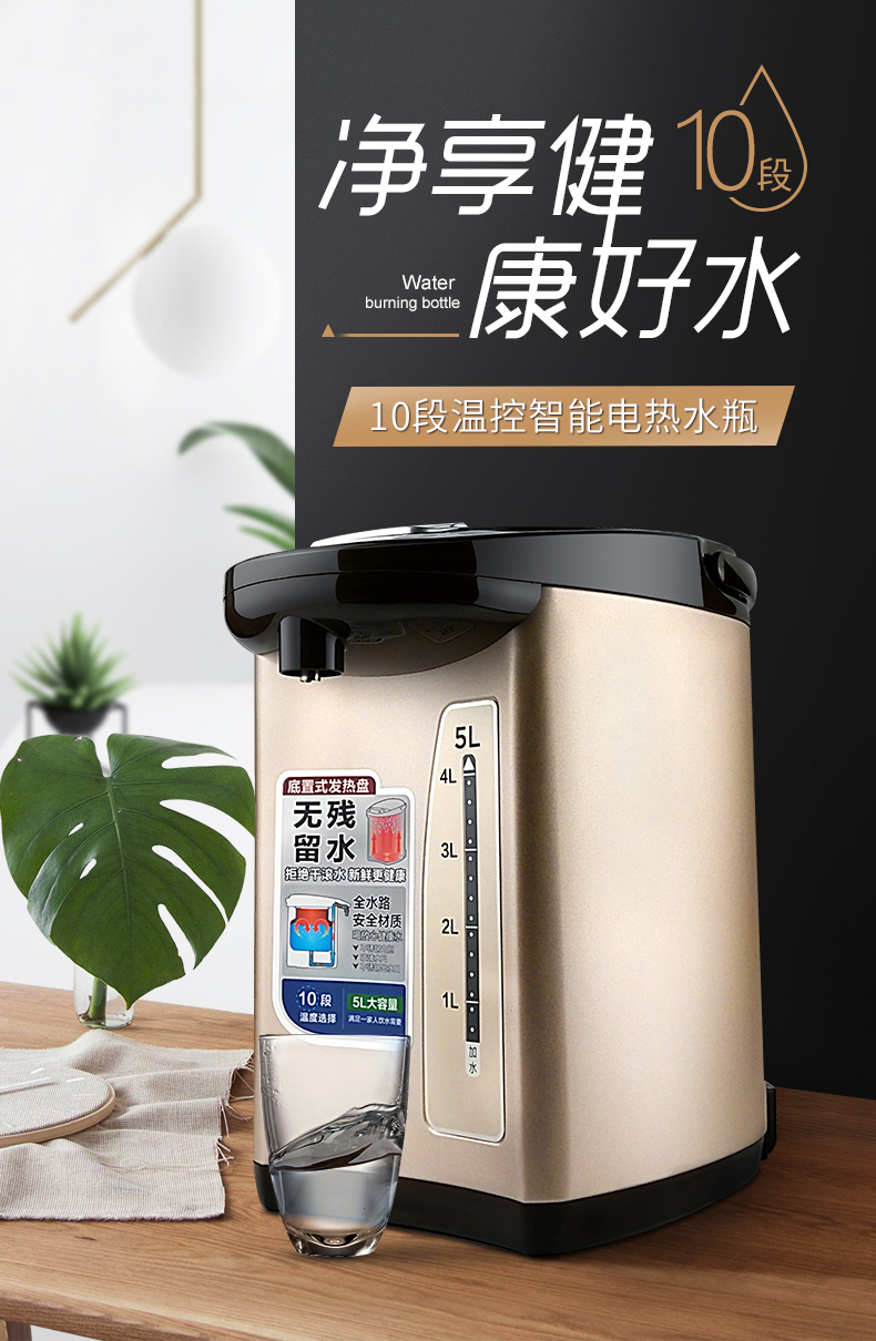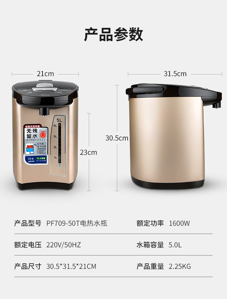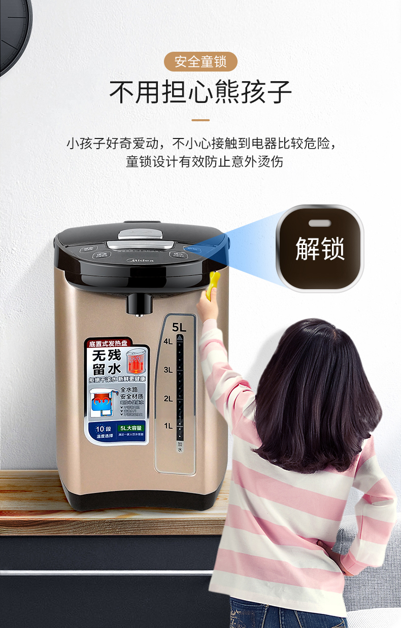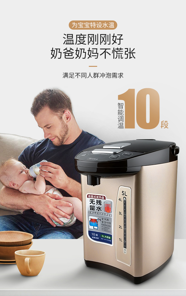 美的(Midea)电热水瓶烧水壶 电热水瓶304不锈钢5L电水壶