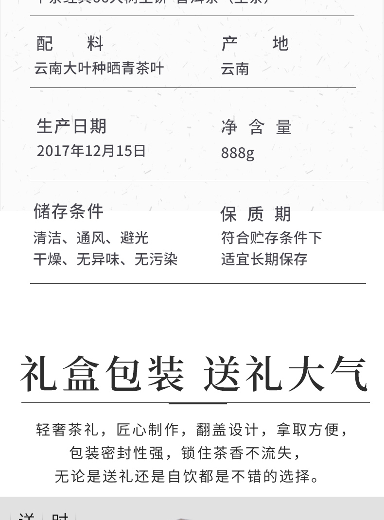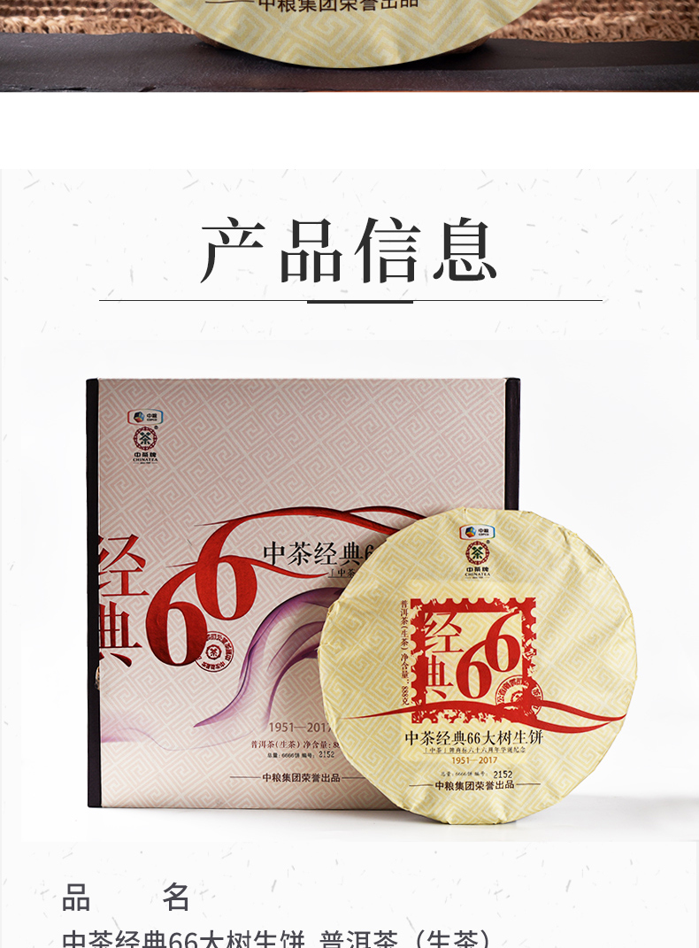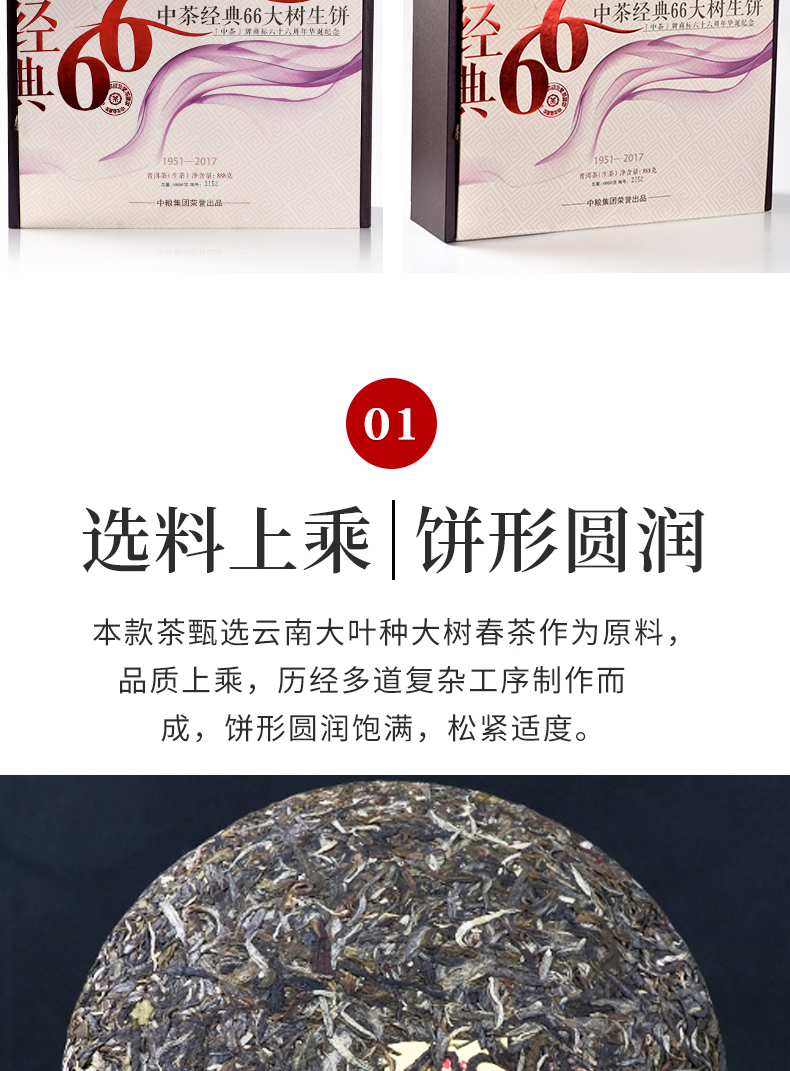 《中粮-中茶》【生茶 -礼盒装】 2018年经典66大树纪念饼普洱茶 888g/饼