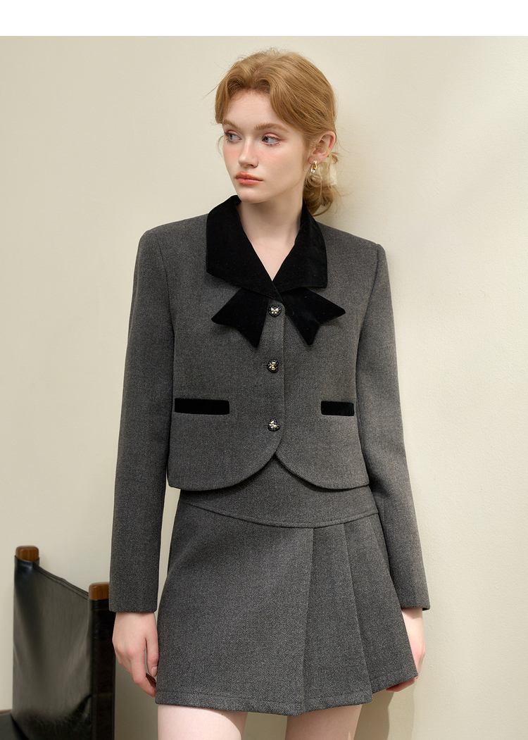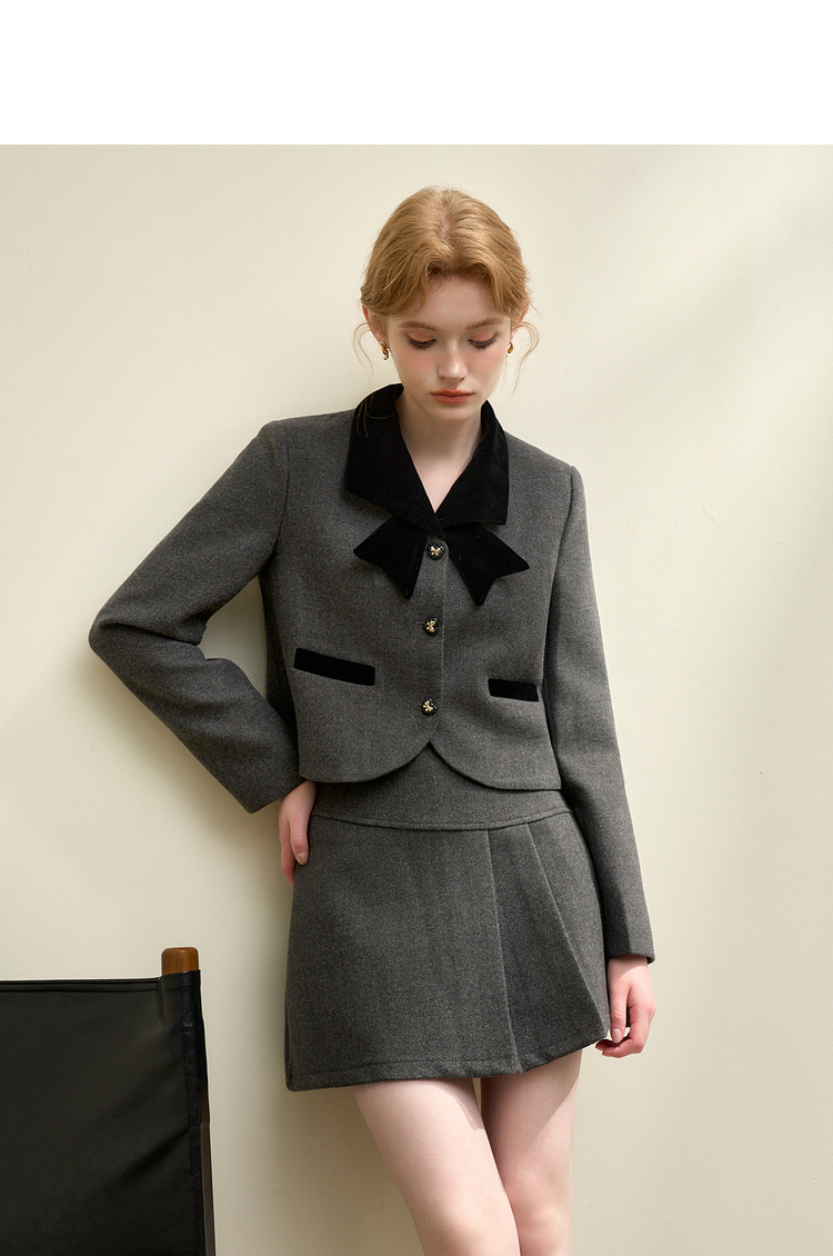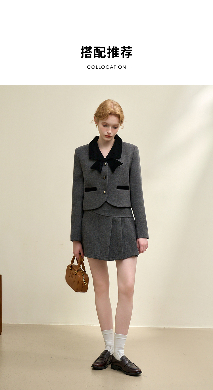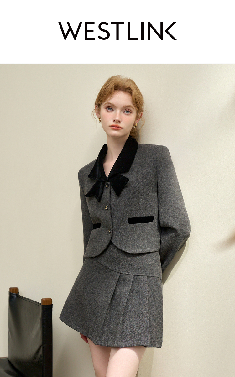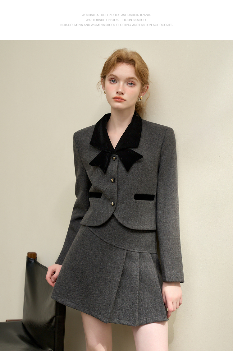 西遇法式小香风套装裙女新款气质蝴蝶外套半身裙两件套D0043913