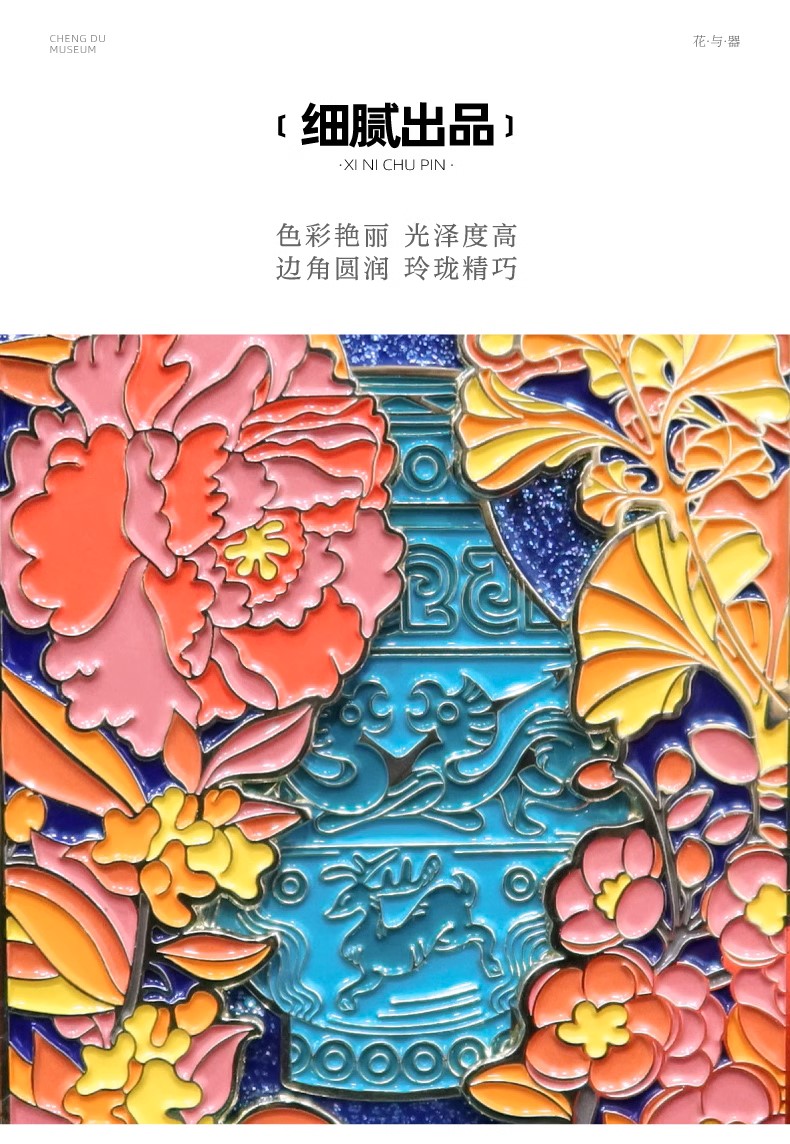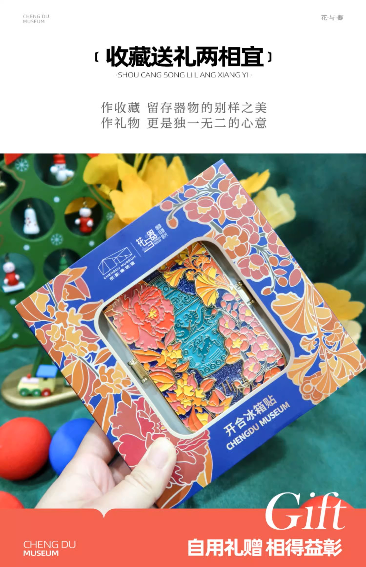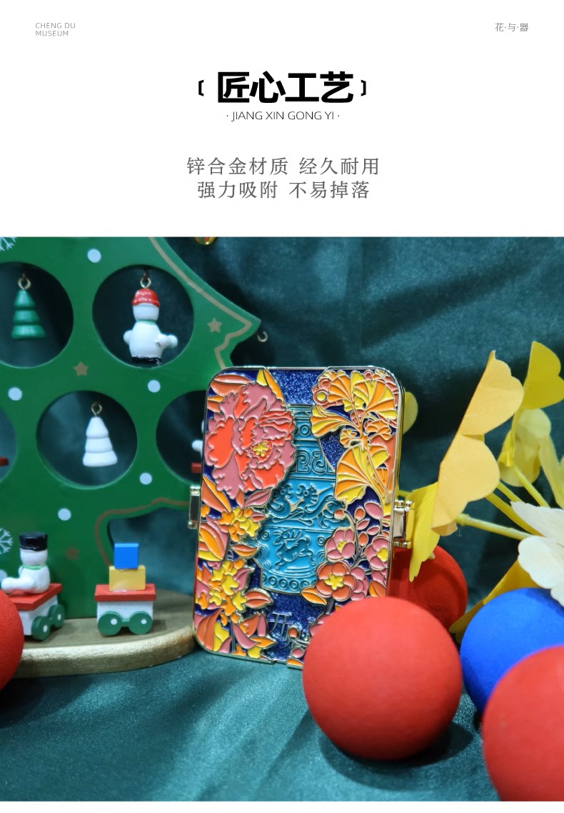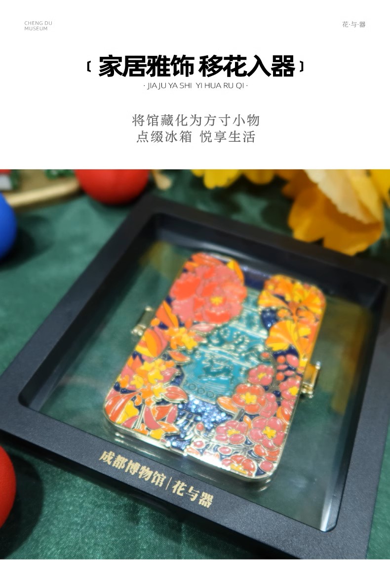 成都博物馆 花与器开合金属冰箱贴 博物文创礼品成都纪念品高级感