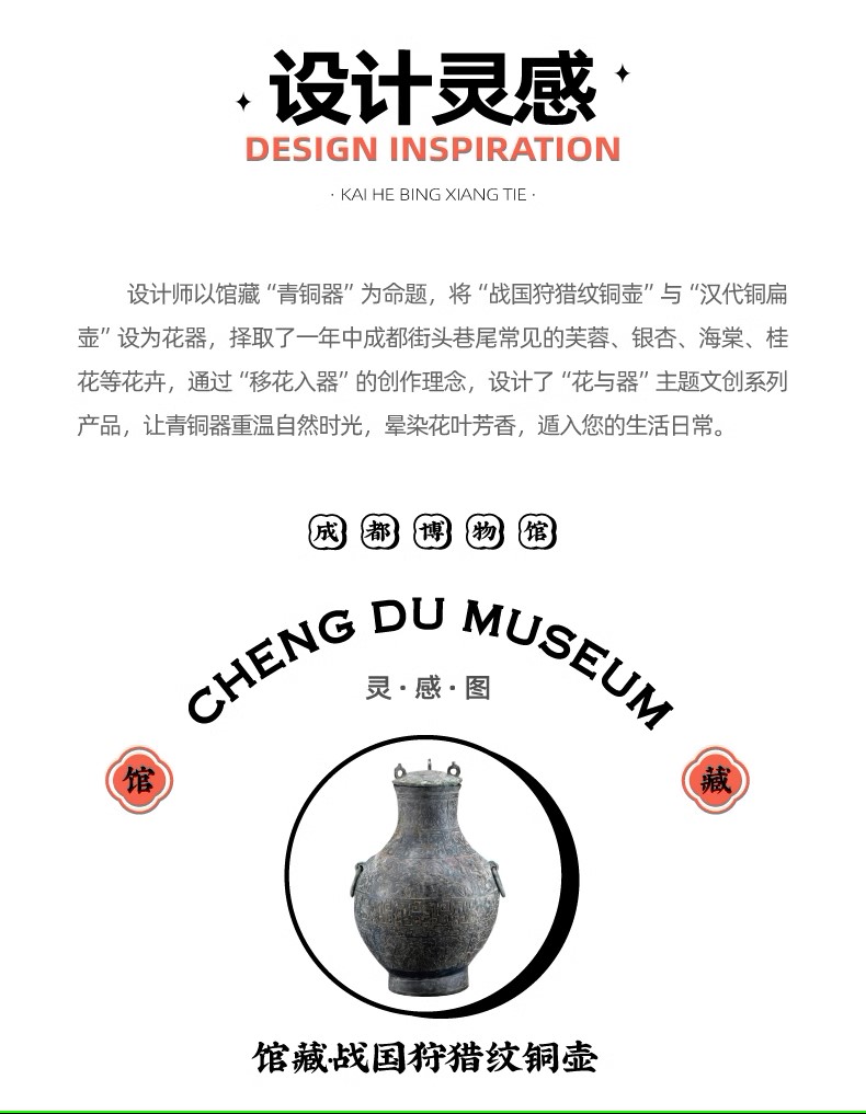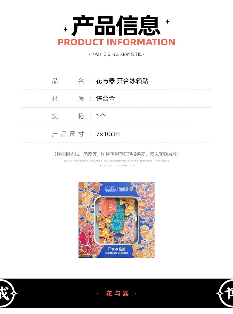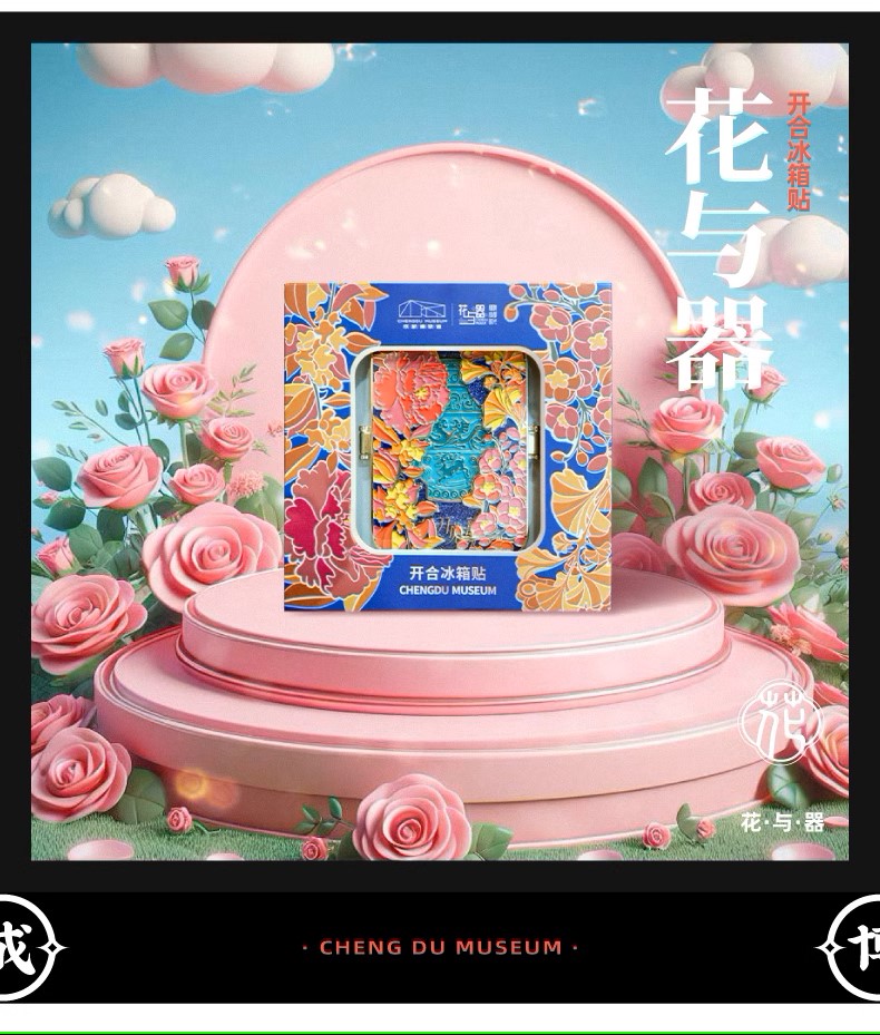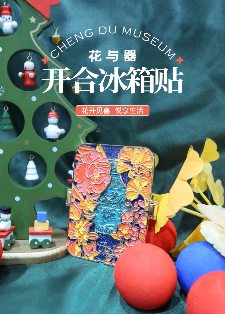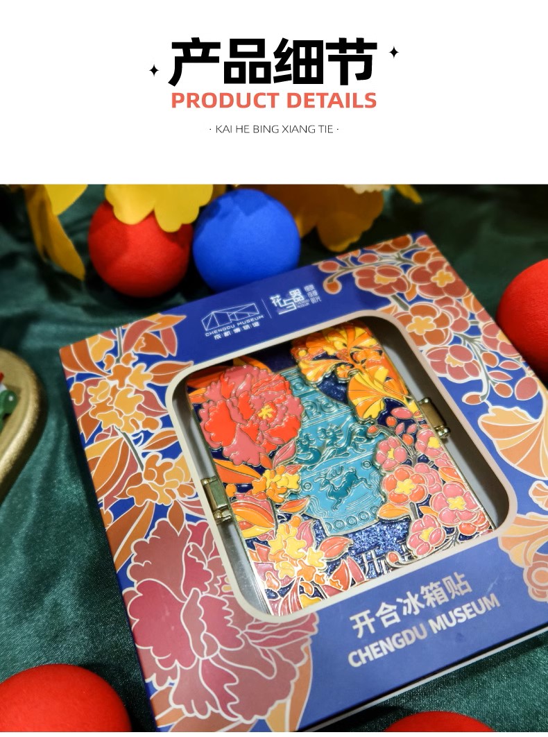 成都博物馆 花与器开合金属冰箱贴 博物文创礼品成都纪念品高级感