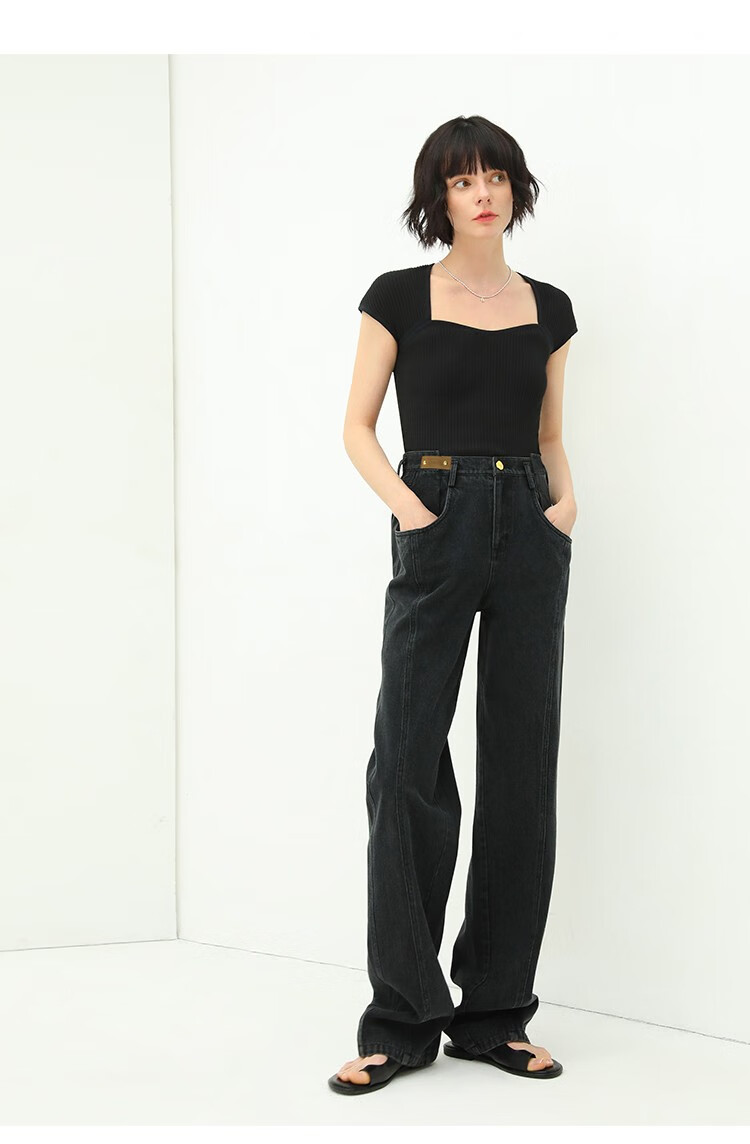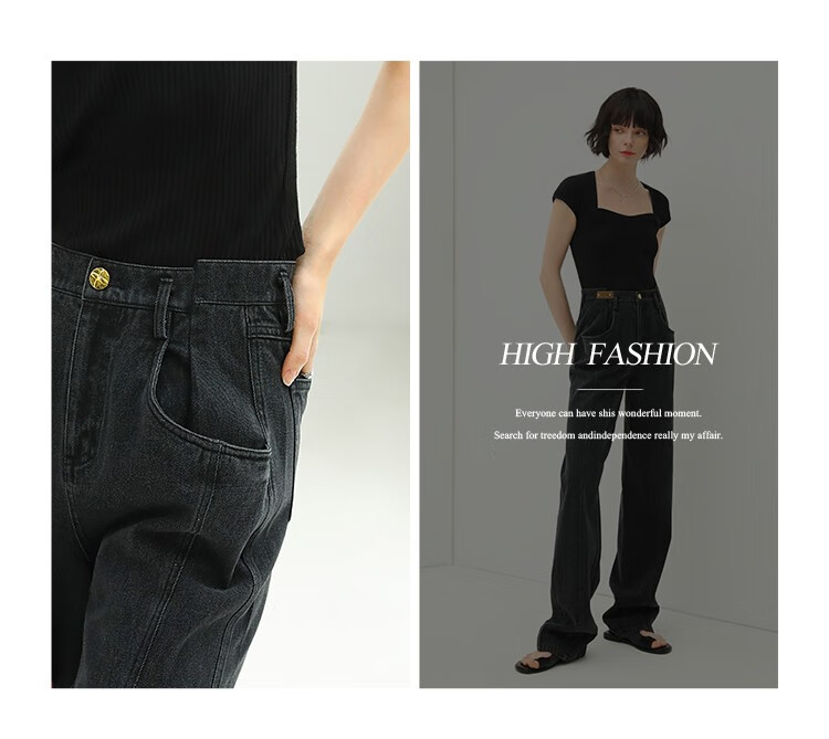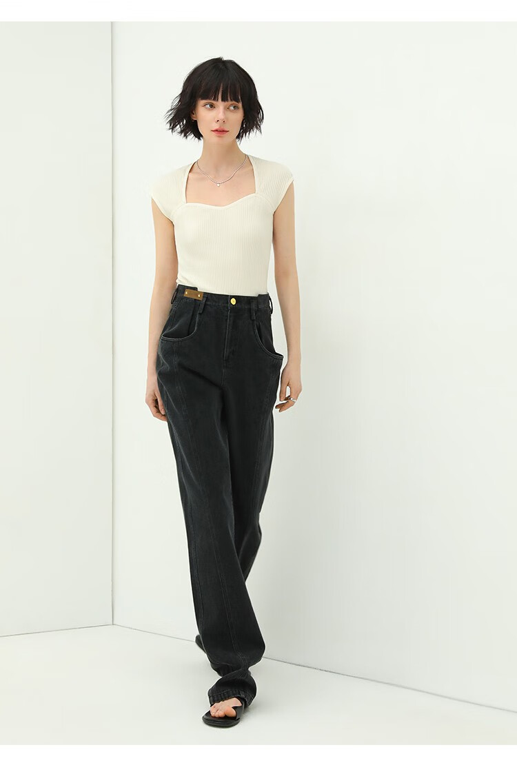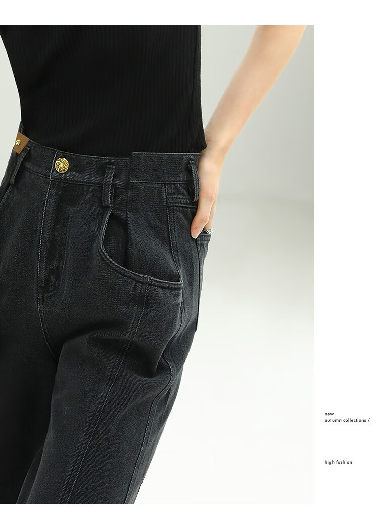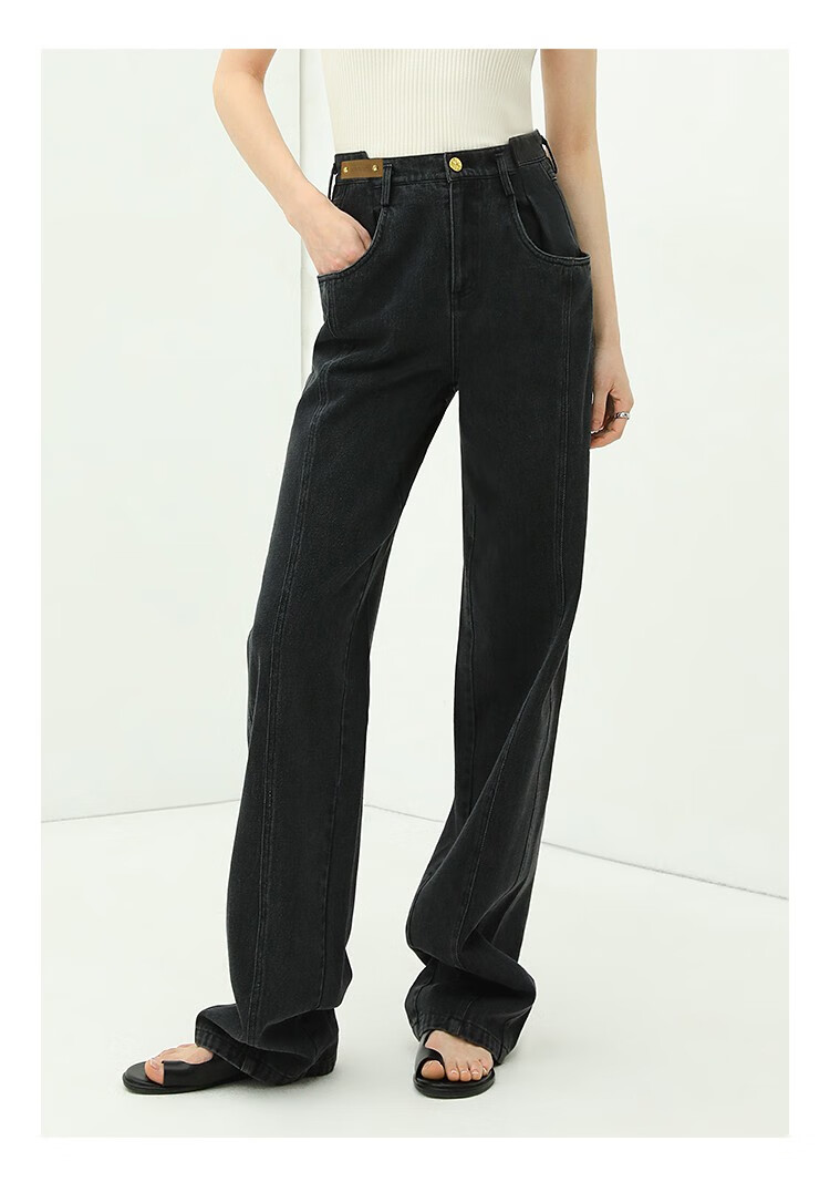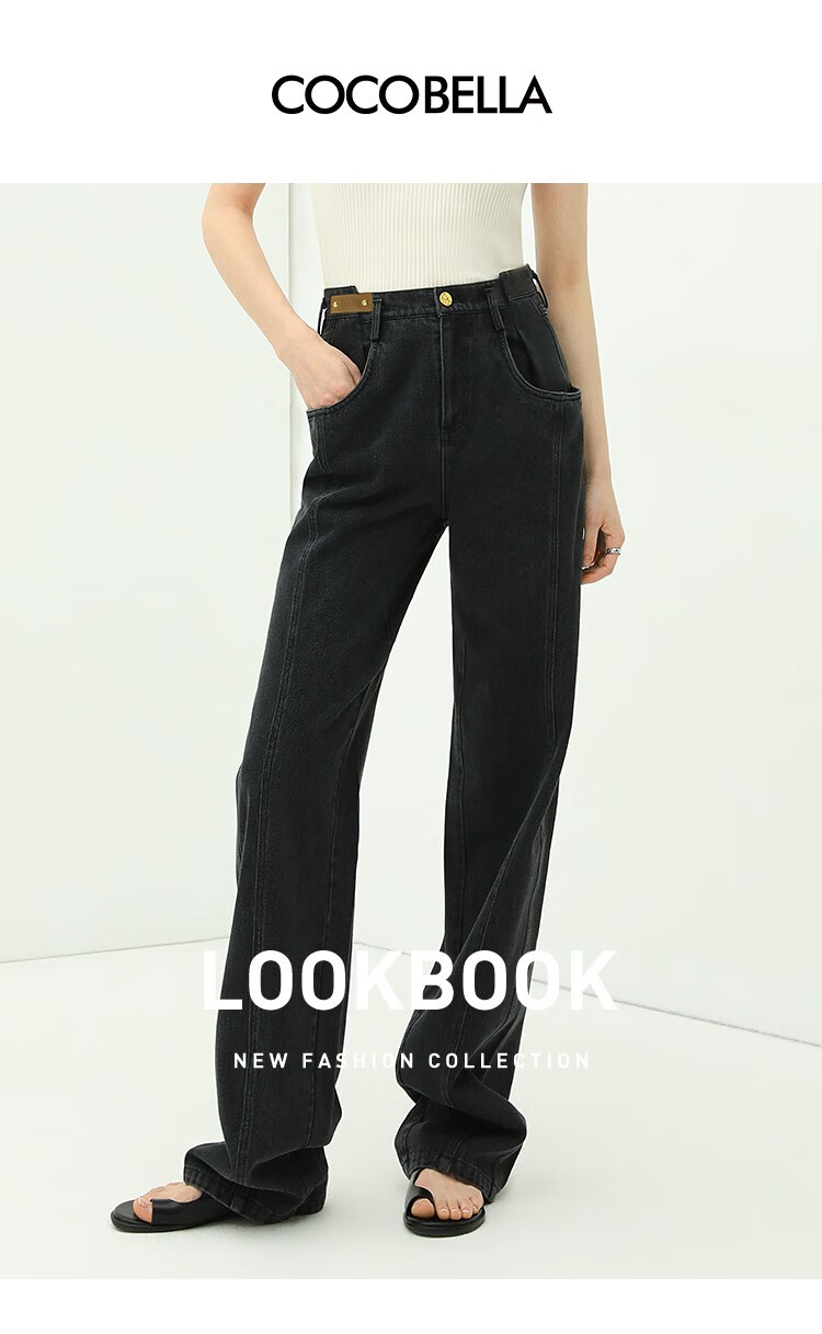 COCOBELLA设计感解构牛仔裤女质感铆钉宽松休闲裤直筒裤DN613