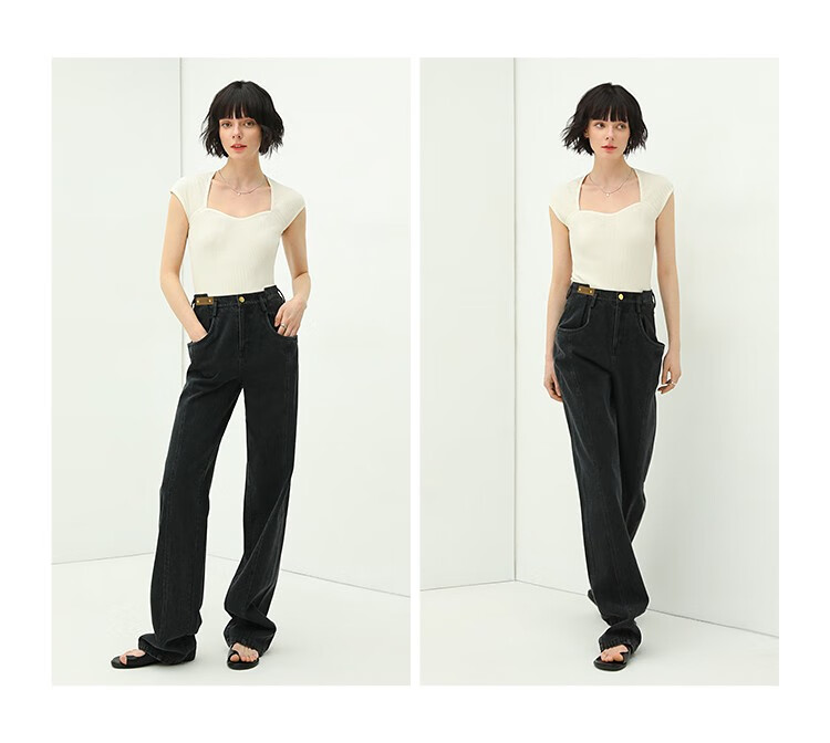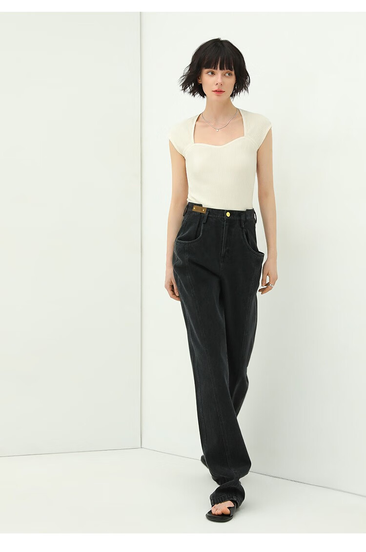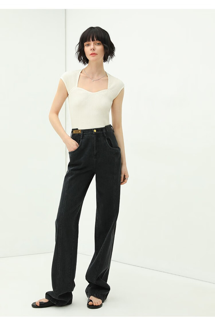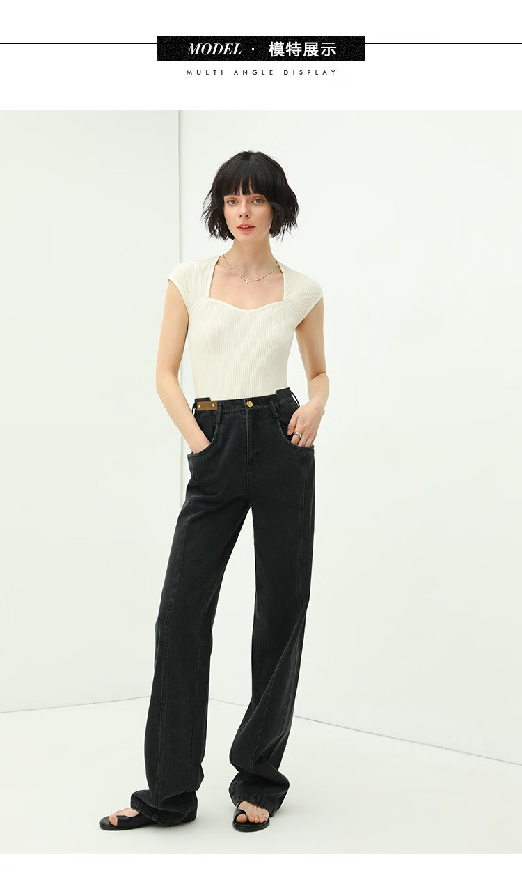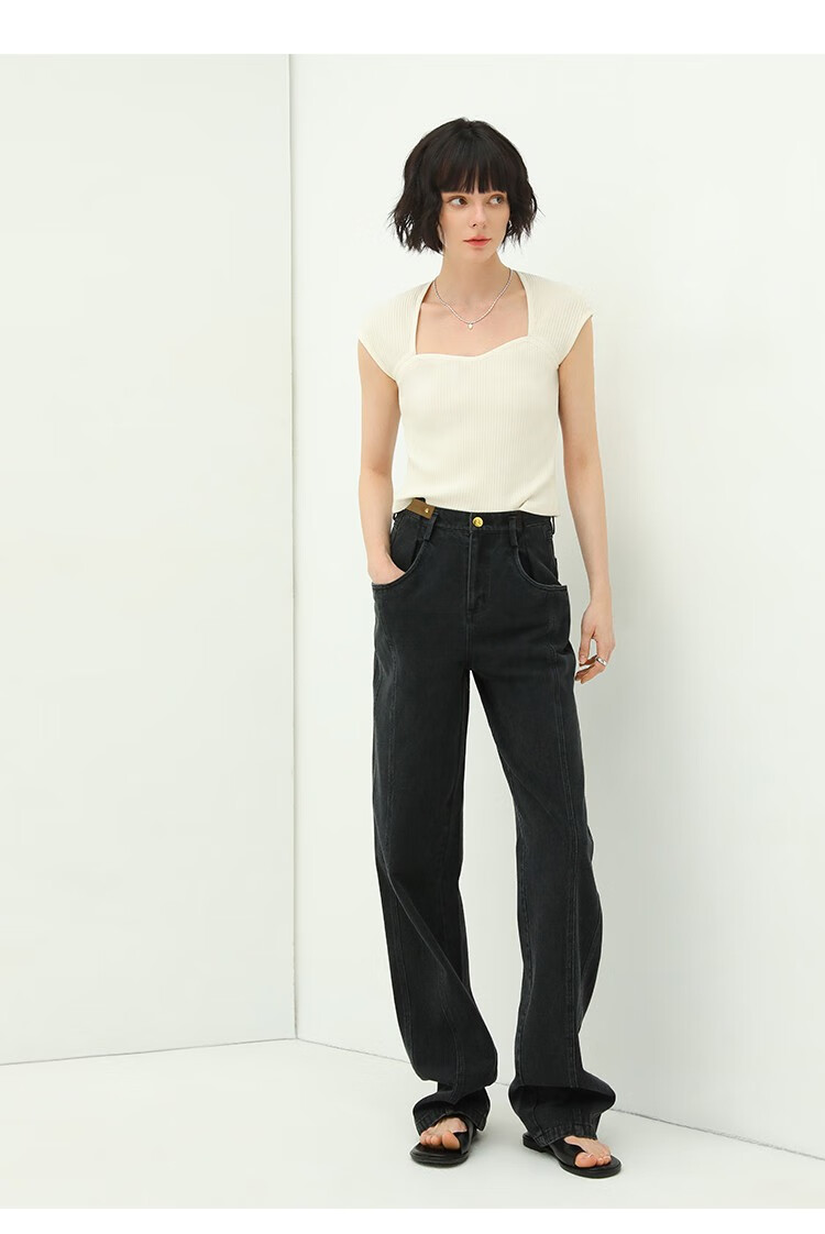 COCOBELLA设计感解构牛仔裤女质感铆钉宽松休闲裤直筒裤DN613
