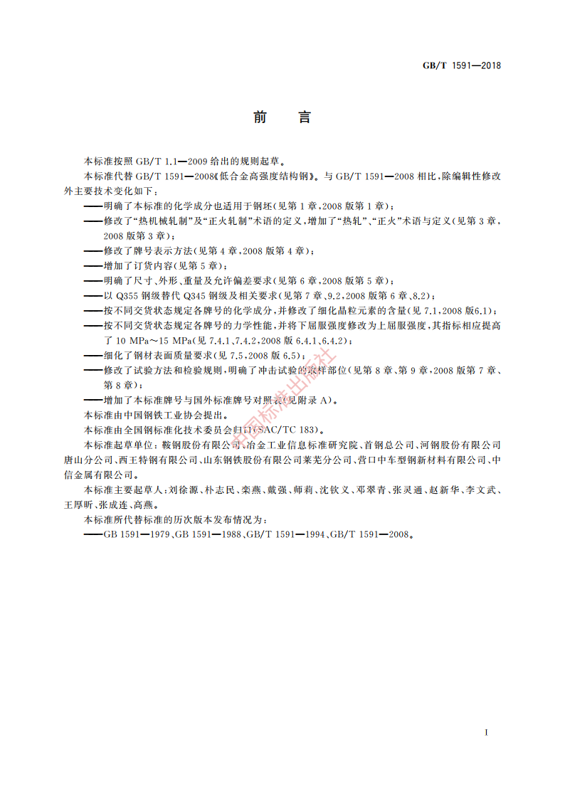 书名:GB/T 1591-2018 低合金高强度结构钢