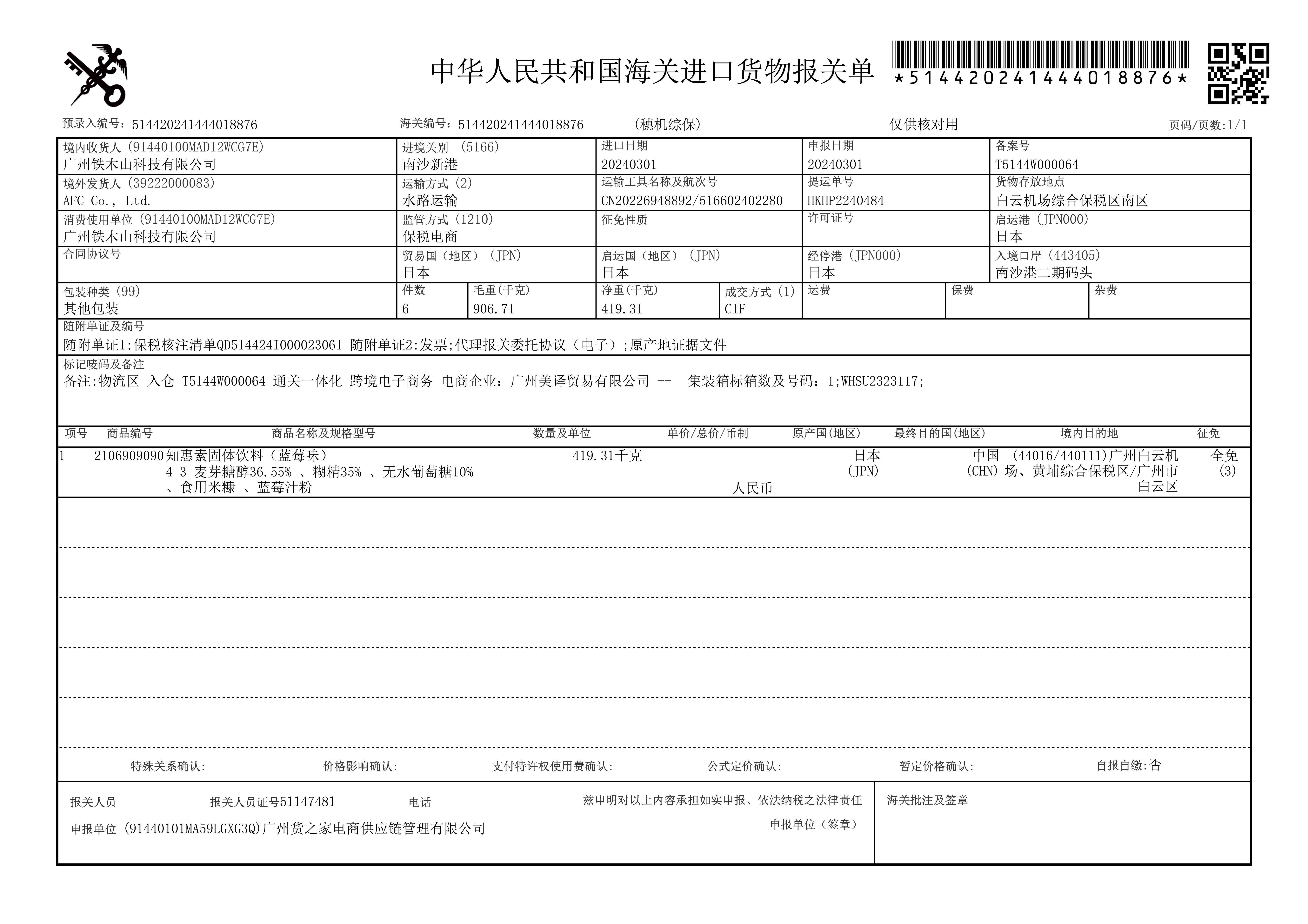 知恵の素2(跨境进口,6盒起优惠组合,698元/盒,保税仓发货)知惠素2固体饮料(蓝莓味)