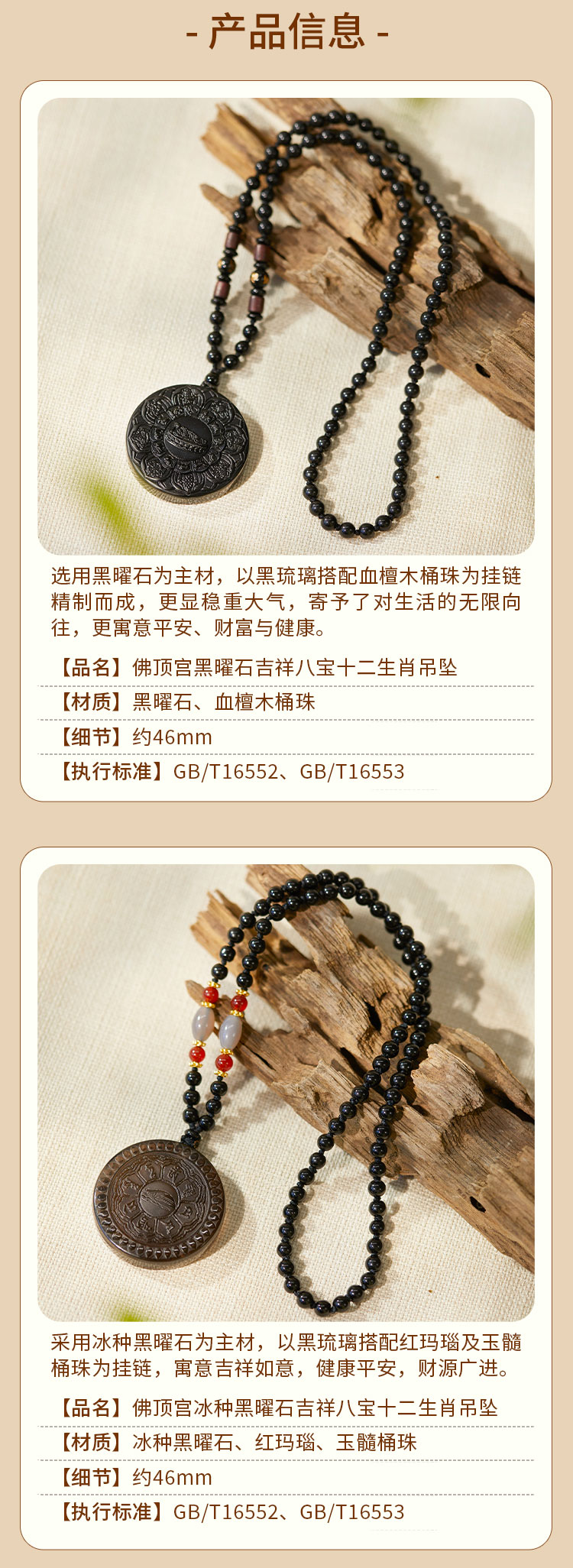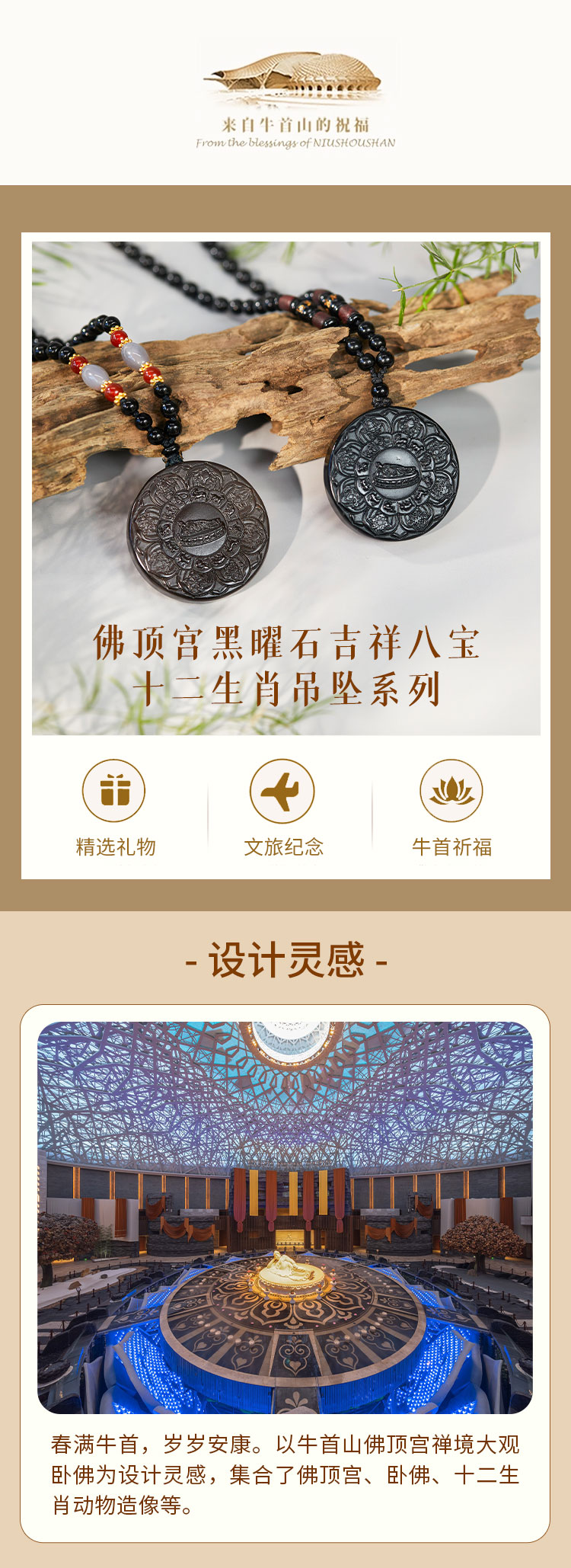 牛首山佛顶宫黑曜石吉祥八宝十二生肖吊坠男女款本命年牛首山