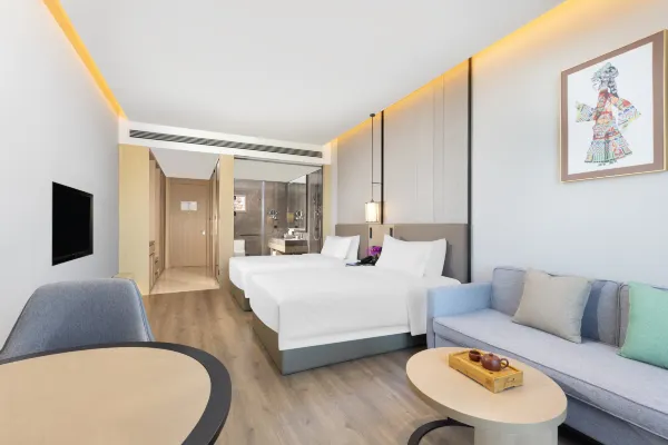 1. 含次日2大2小早餐(两小指的是1.4米以下儿童) (1)早餐时间:周一-周五:7:00-10:00,周六-周日:7:00-10:30 (2)早餐形式:自助早餐 (3)超出人数或超出儿童身高限制加收标准:1.2米以下免费,1.2-1.4米半价29元/位,1.4米及以上50元/位 2. 欢迎礼遇1份 (1)包含内容:V1礼遇是指2宫格小食拼盘,V2礼遇是指3宫格小食拼盘 (2)领取方式:入住首日送至房间 3. 入住当日迷你吧 (1)包含的内容:3瓶罐装软饮 (2)此福利连住可续 4.酒店定制陇州油旋伴手礼1份(离店时赠送) |