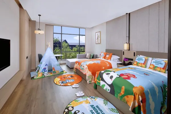 1. 入住客人可享陇县龙门洞景区门票5折-7折优惠 (1)优惠购票使用方法:凭借入住账单现场购买门票可享受门市价7折优惠,儿童1.2米以下免费,学生凭借学生证享受门市价半价优惠 2. 酒店中心花园民谣乐队演出 (1)演出时间:即日起至9月13日每周五、周六19:30-21:30 (2)演出地点:酒店中心花园 3. 欢乐亲子豪华房/豪华房,房间长榻可免费增加床品(含枕头、床单、被子) (1)请在入住前告知酒店需求,客用品数量有限,以酒店回复为准。 4. 儿童乐园 (1)营业时间:24小时 (2)住店客人可免费体验(无人数限制) 5. 泳池 (1)营业时间:9:30-21:00 (2)每间房最多2大2小免费体验,需要自带泳帽泳衣,泳帽必须要带哦~ 6. 健身房 (1)营业时间:9:00-21:00 (2)每间房最多2大2小免费体验 |