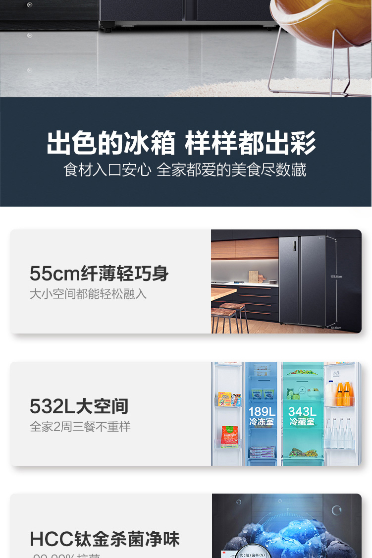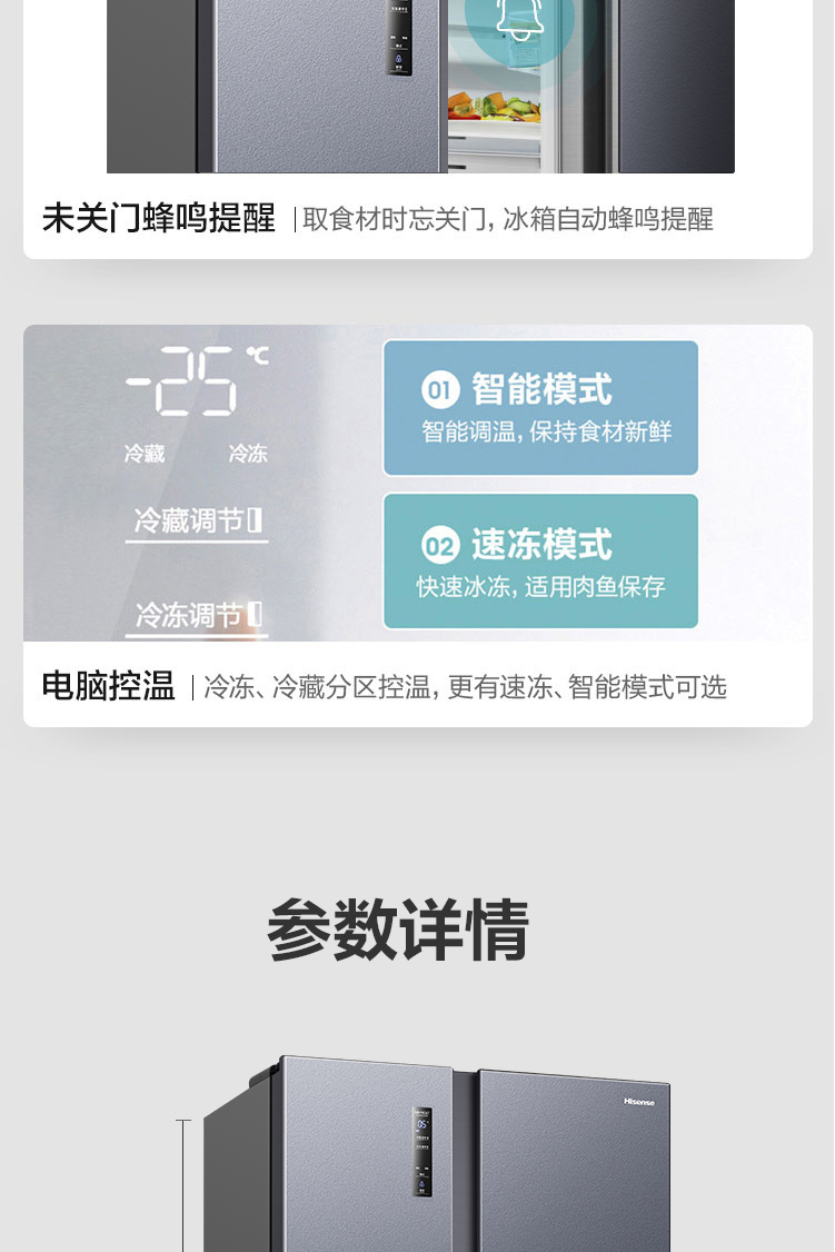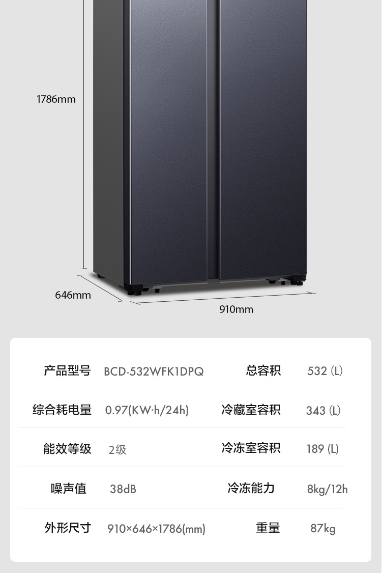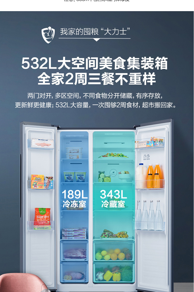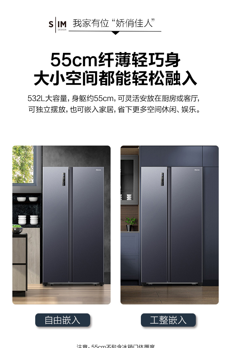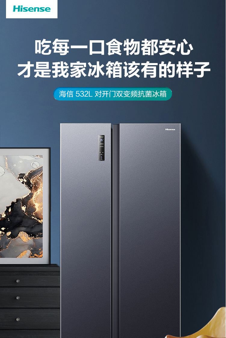 海信(Hisense)532升变频对开门双开门 冰箱风冷净味低噪纤薄大容量BCD-532WFK1DPQ