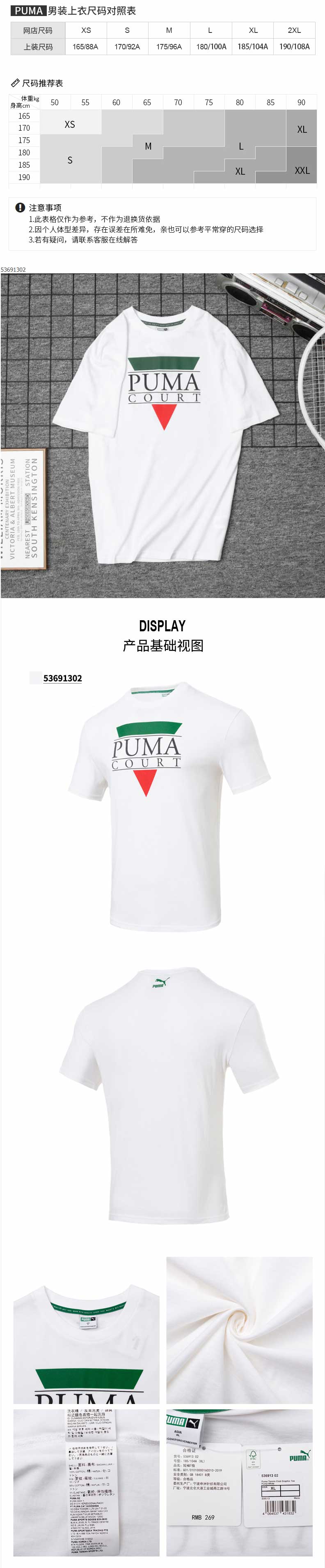 彪马短袖男2022夏季款宽松透气字母印花圆领运动T恤2pu53691302