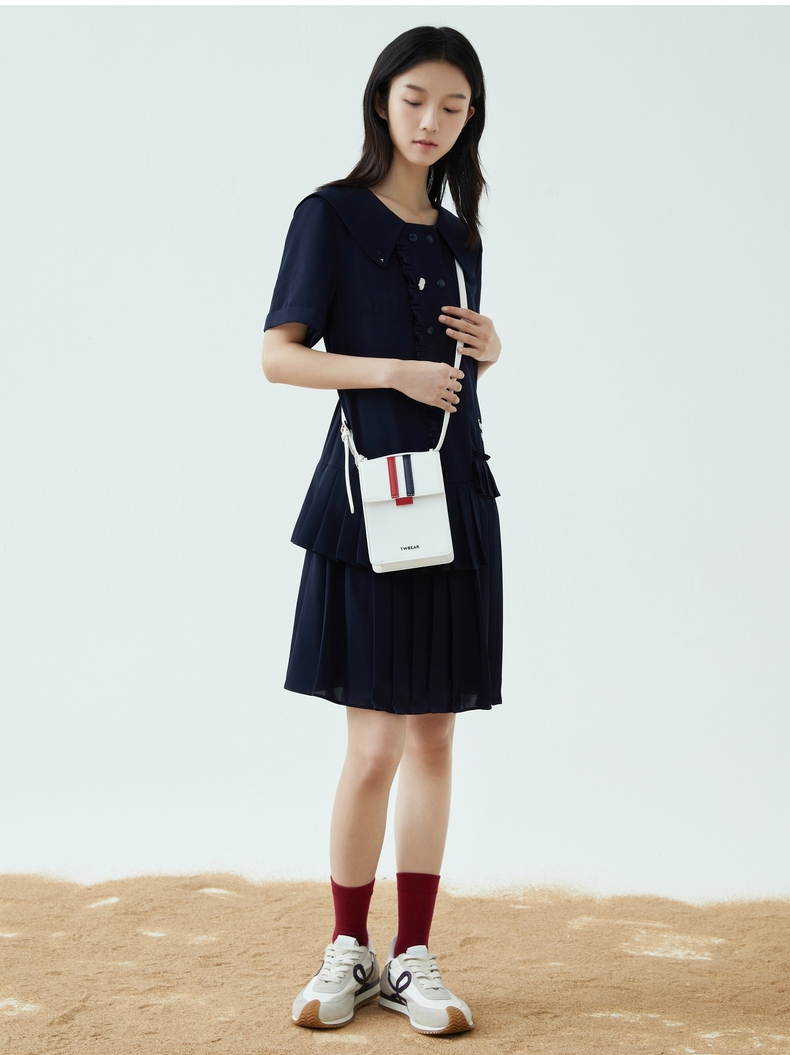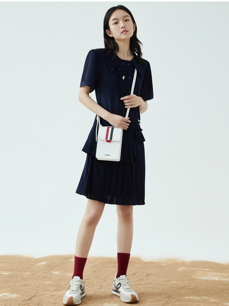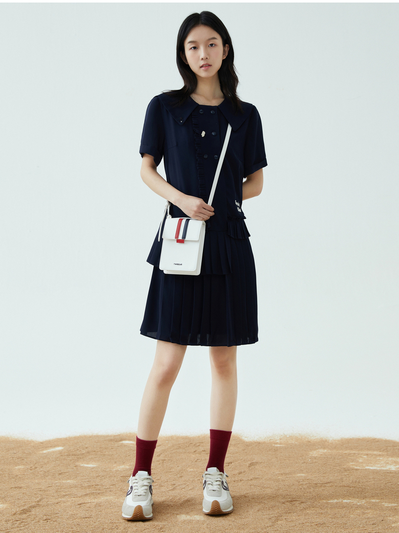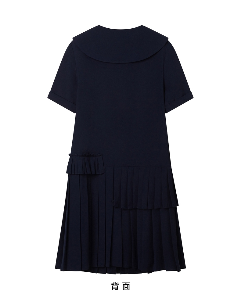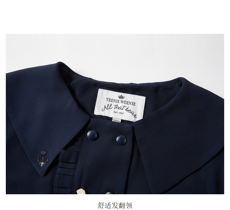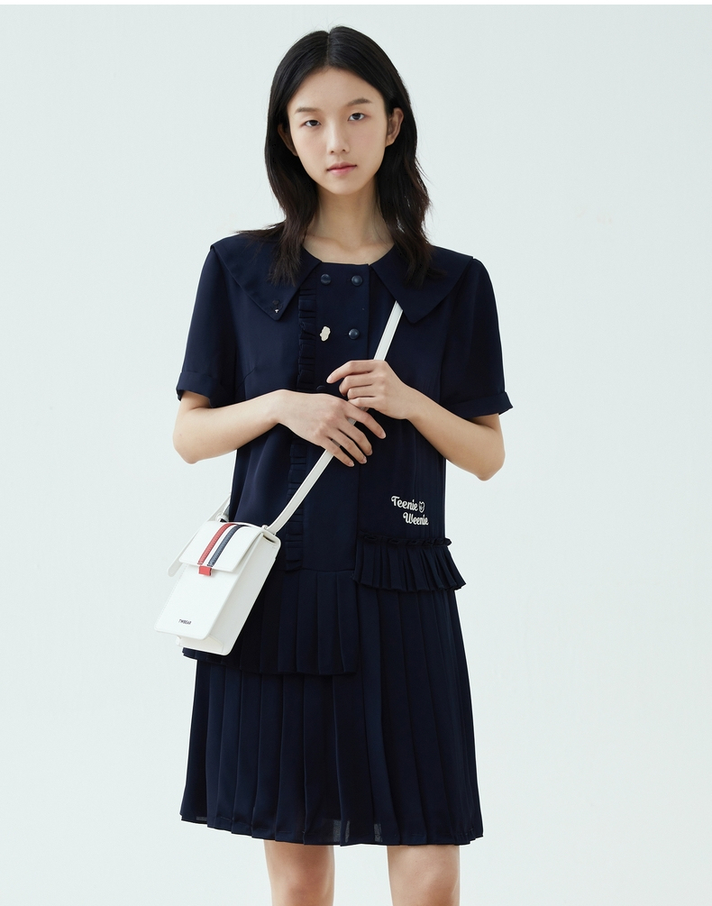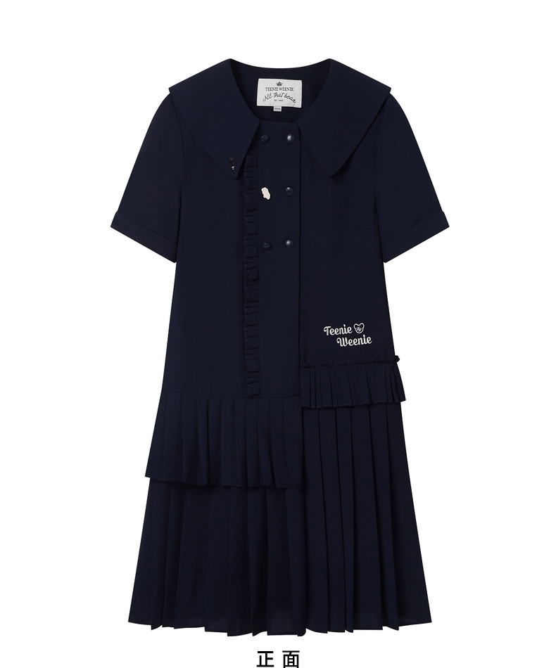 TeenieWeenie小熊2022夏款韩版娃娃领字母刺绣气质百褶连衣裙女TTOW222403P