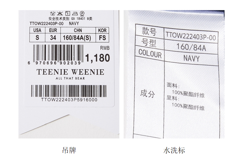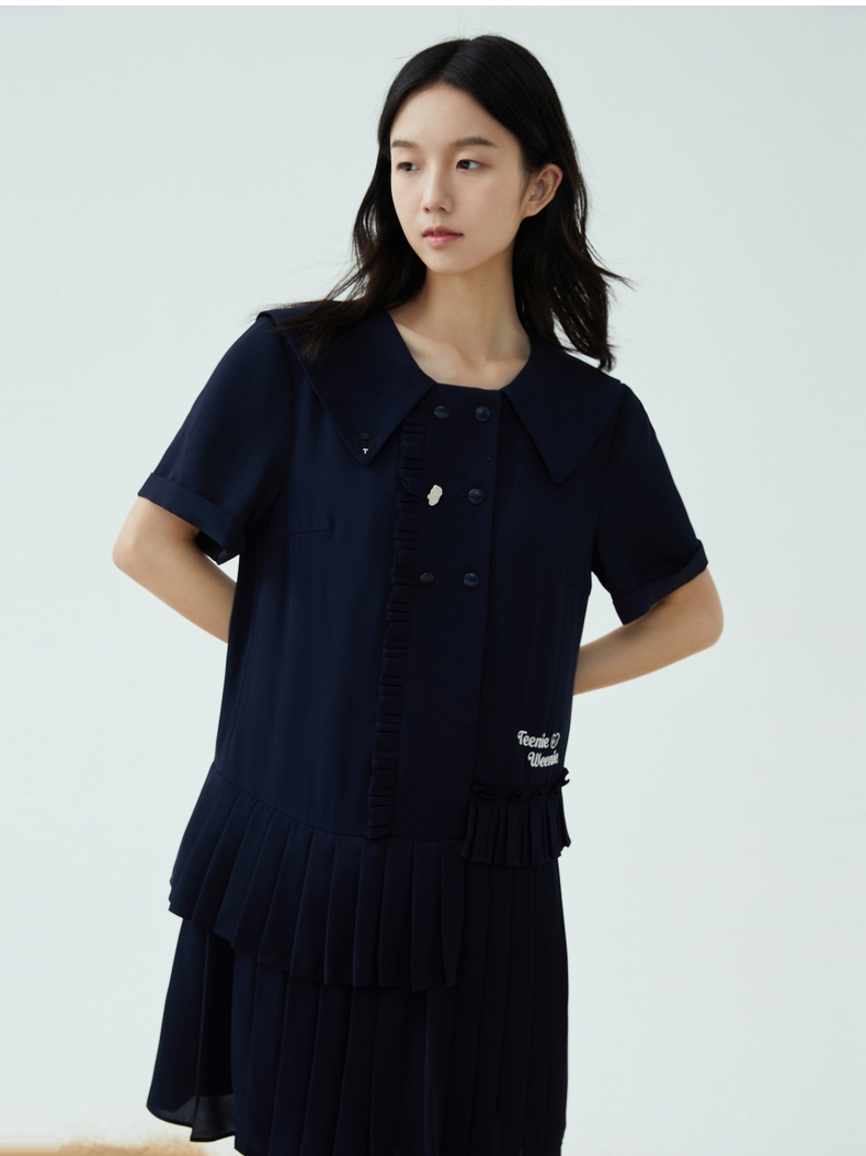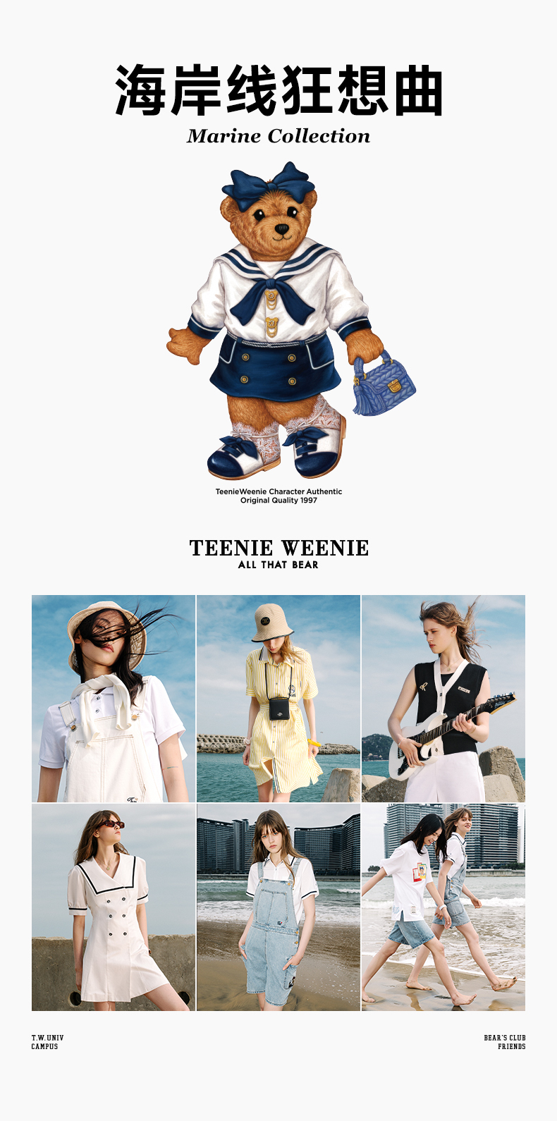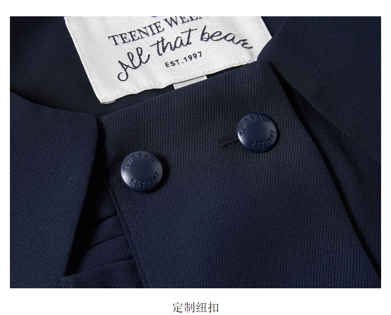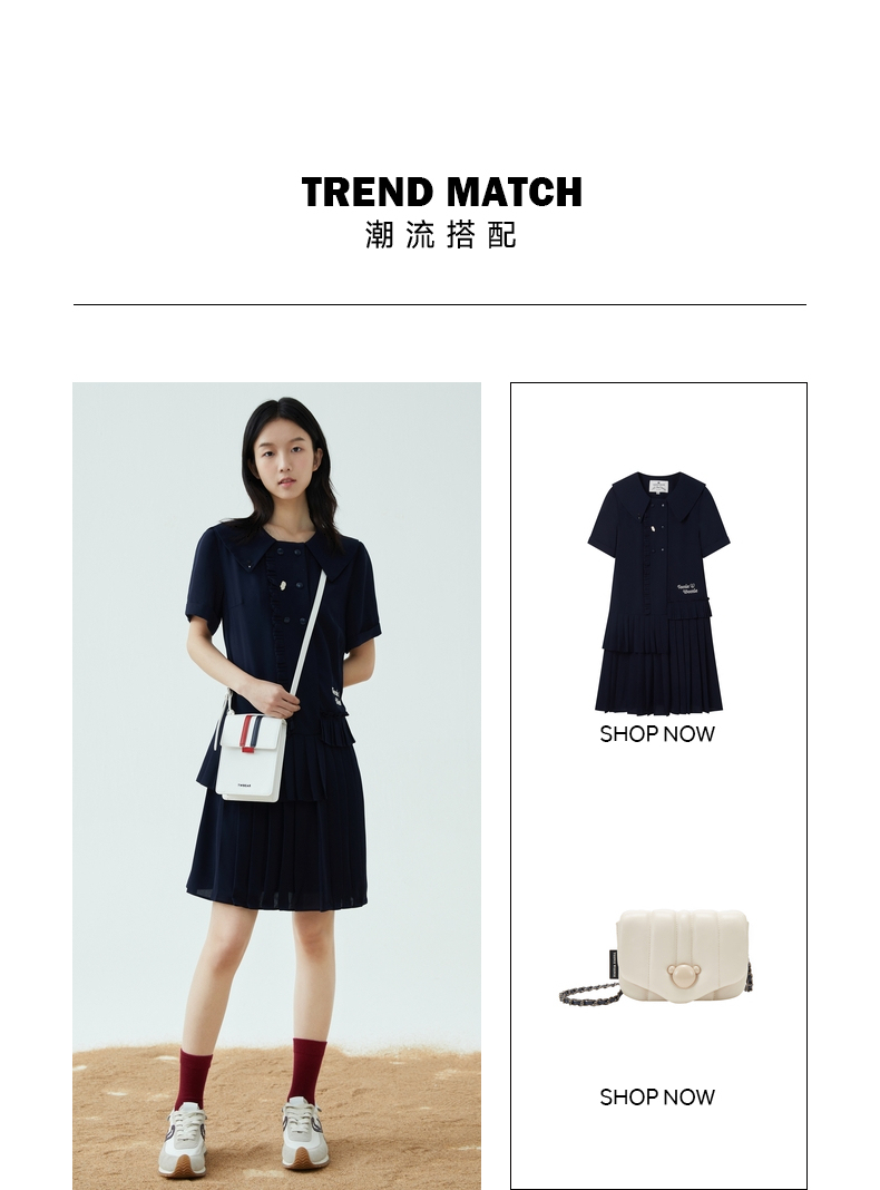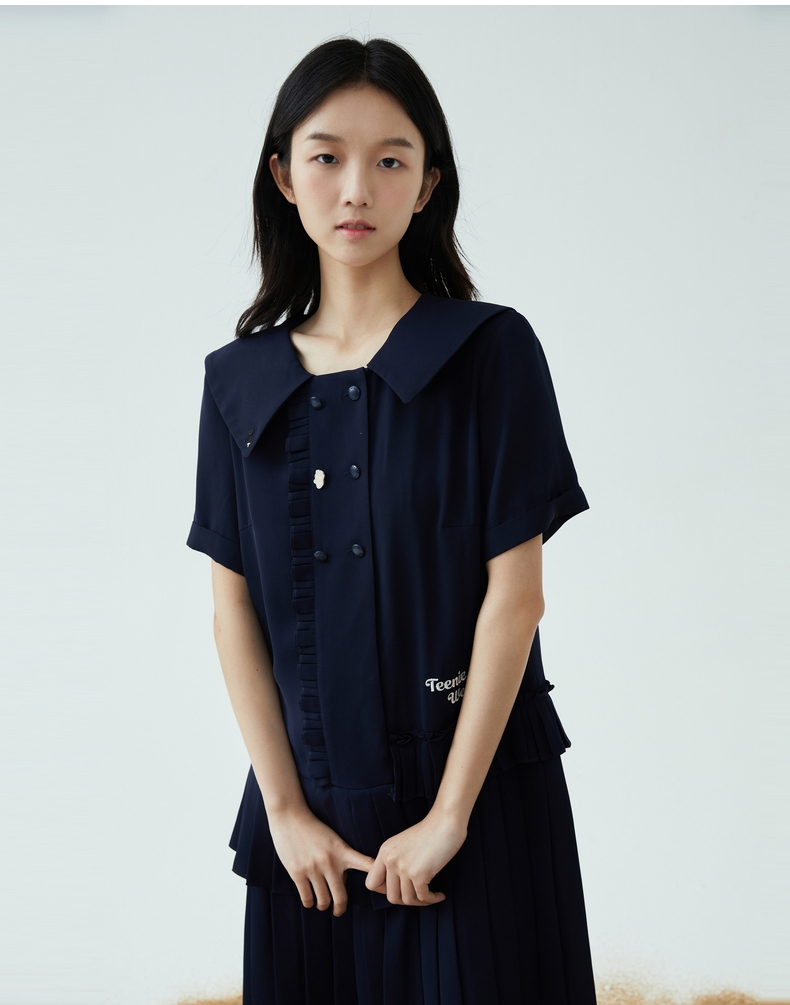 TeenieWeenie小熊2022夏款韩版娃娃领字母刺绣气质百褶连衣裙女TTOW222403P