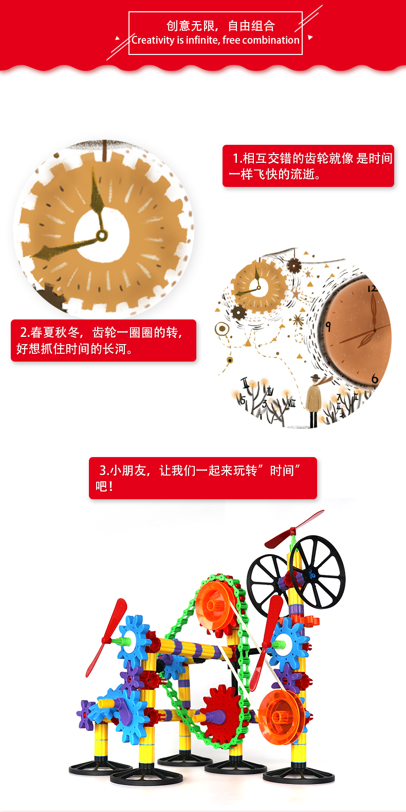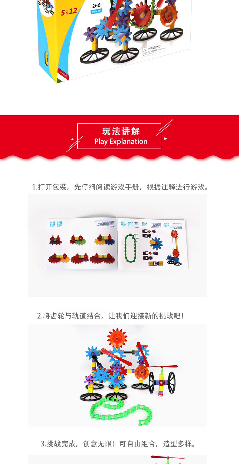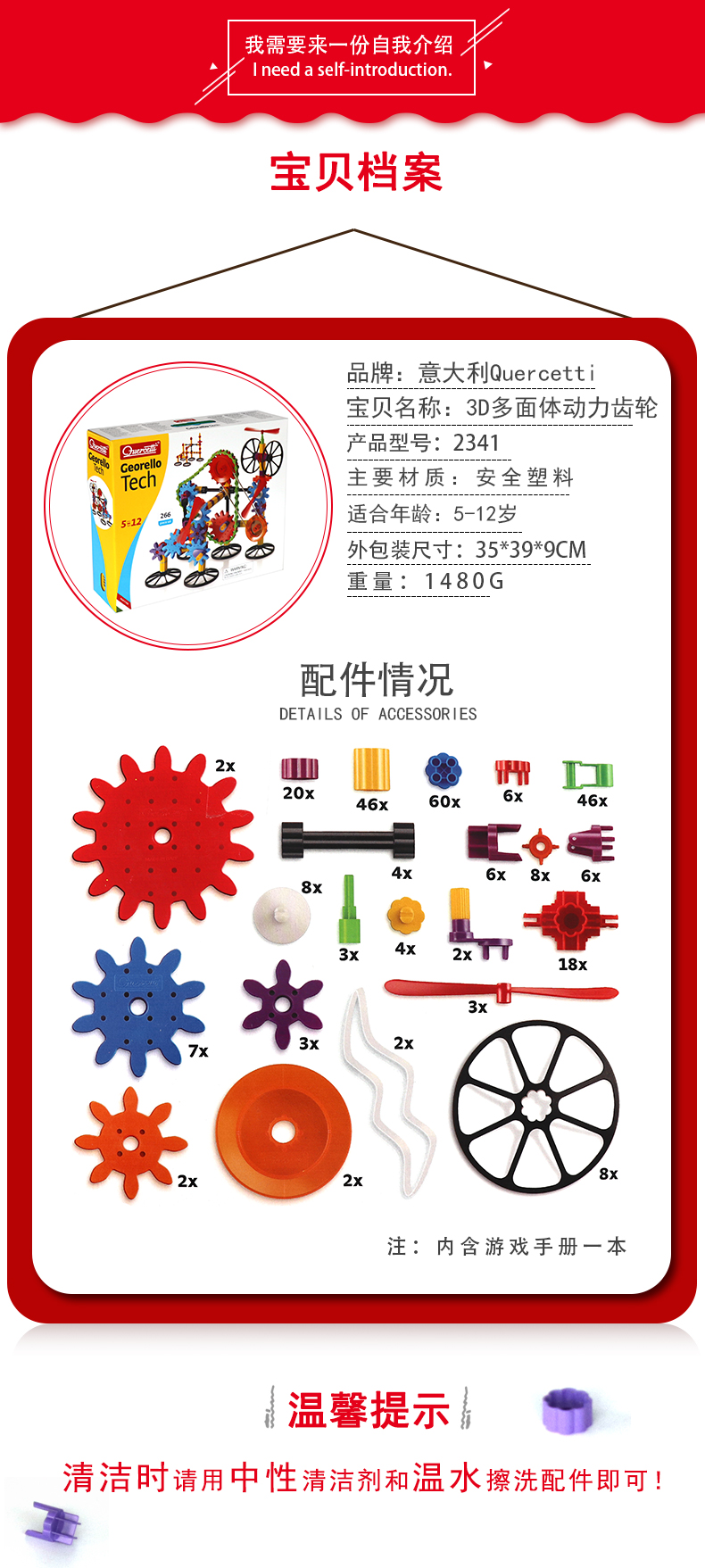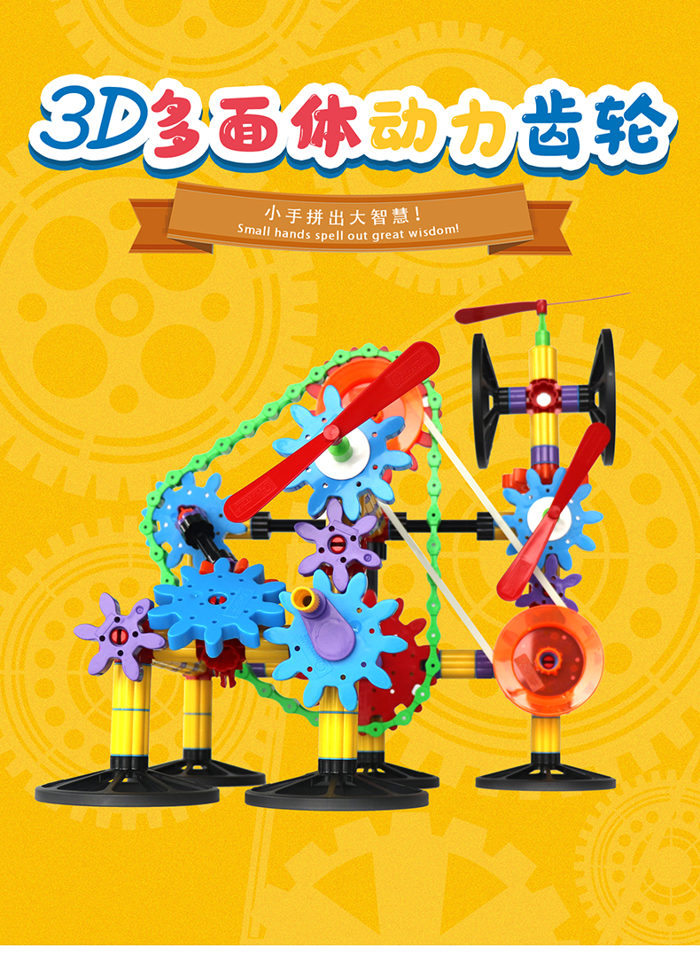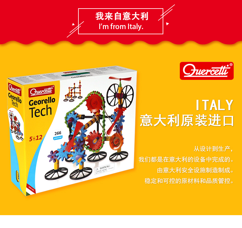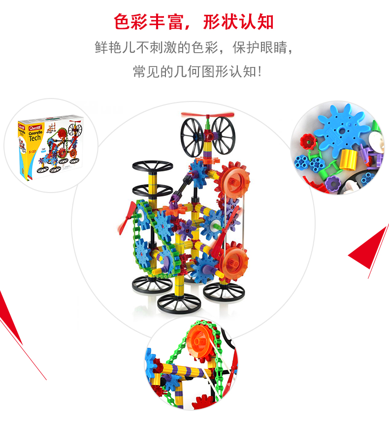 Quercetti启迪 构建系列 3D多面体动力齿轮组合 Q2389 5+岁 意大利