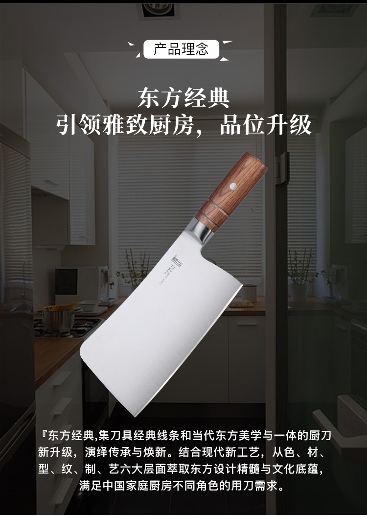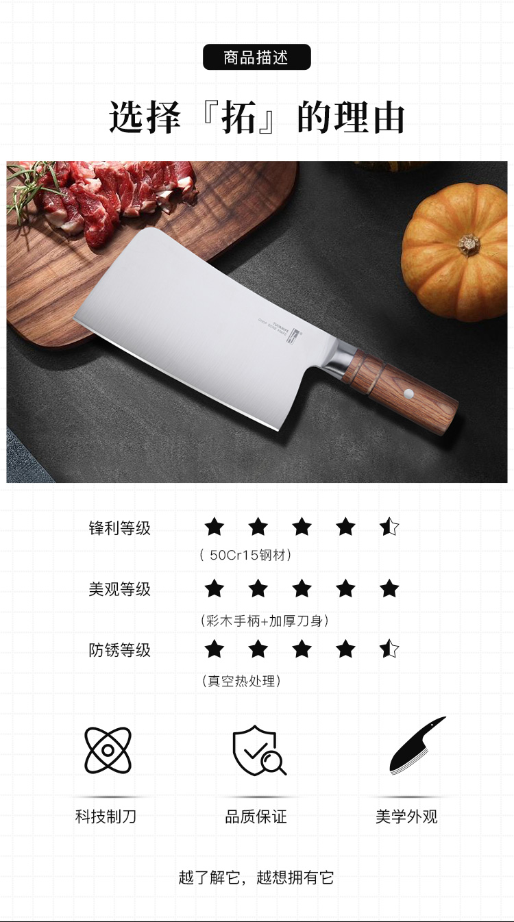 拓 家用菜刀流云厨师专用刀不锈钢切片刀切肉刀果蔬刀