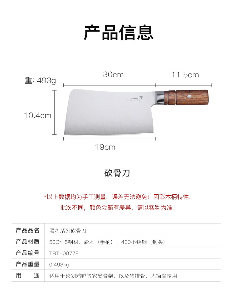 拓 黑将斩骨刀家用剁骨刀加厚砍切刀屠宰砍骨头专用刀