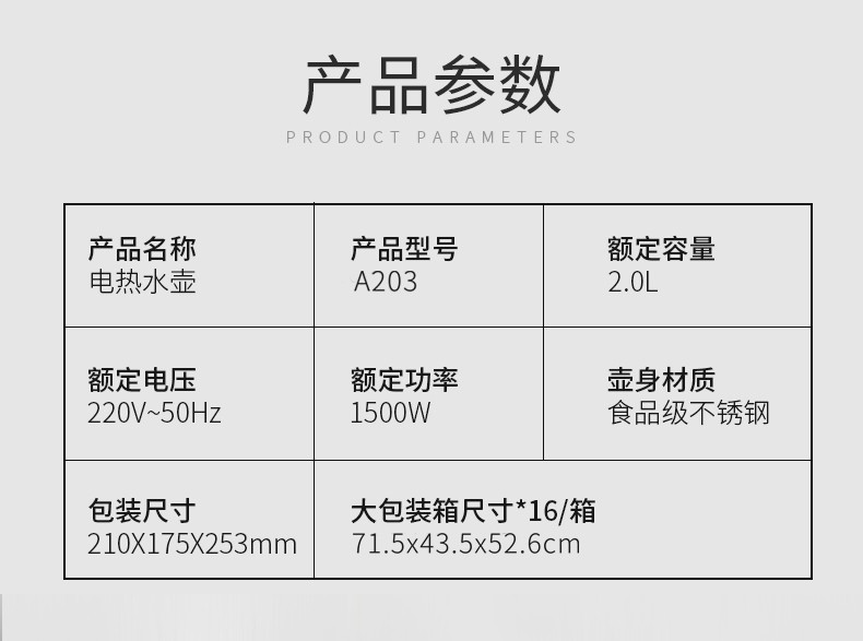 艾贝丽 | 电热水壶 A203小家电