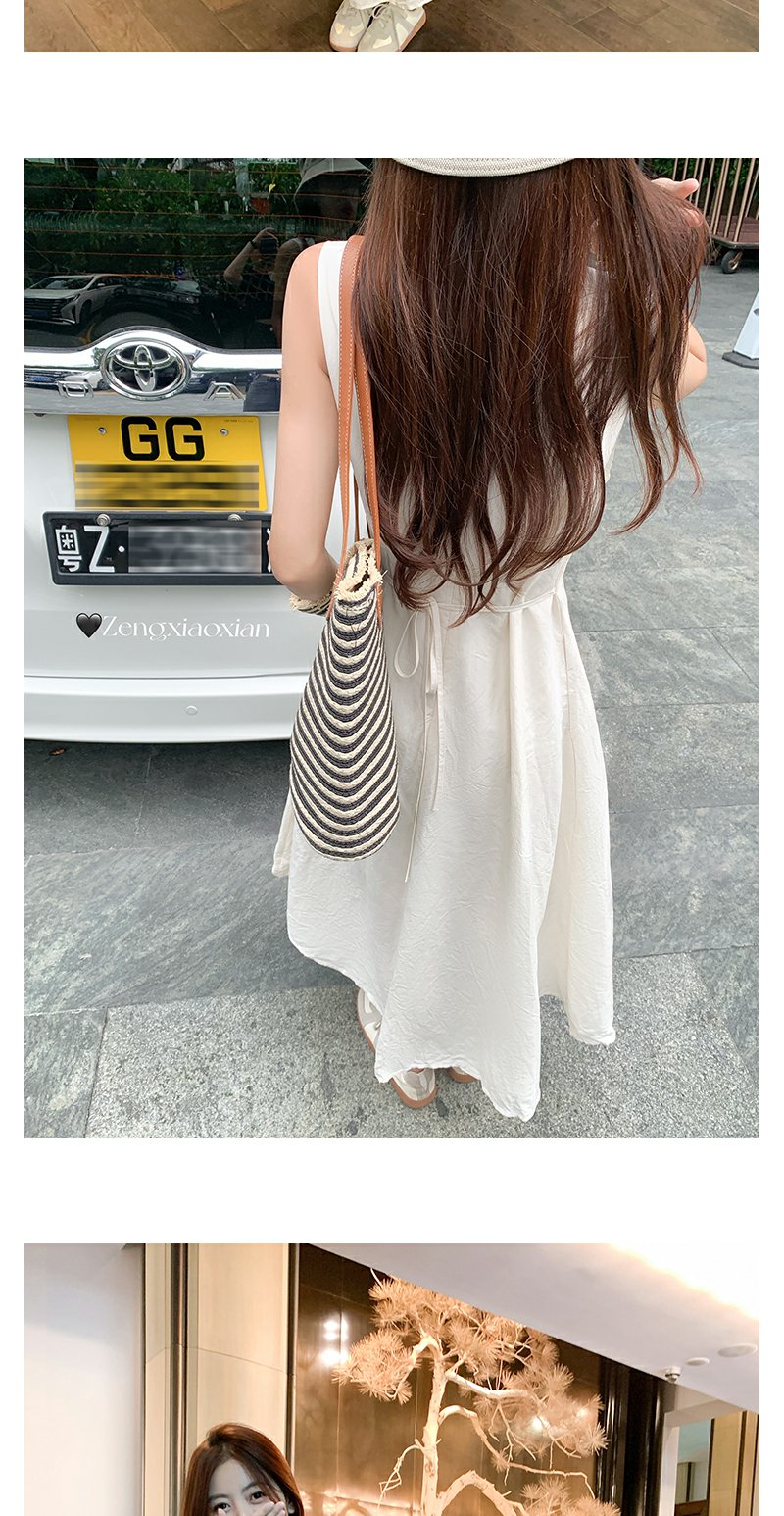 <曾小咸推荐>法式赫本风杏色背心连衣裙无袖