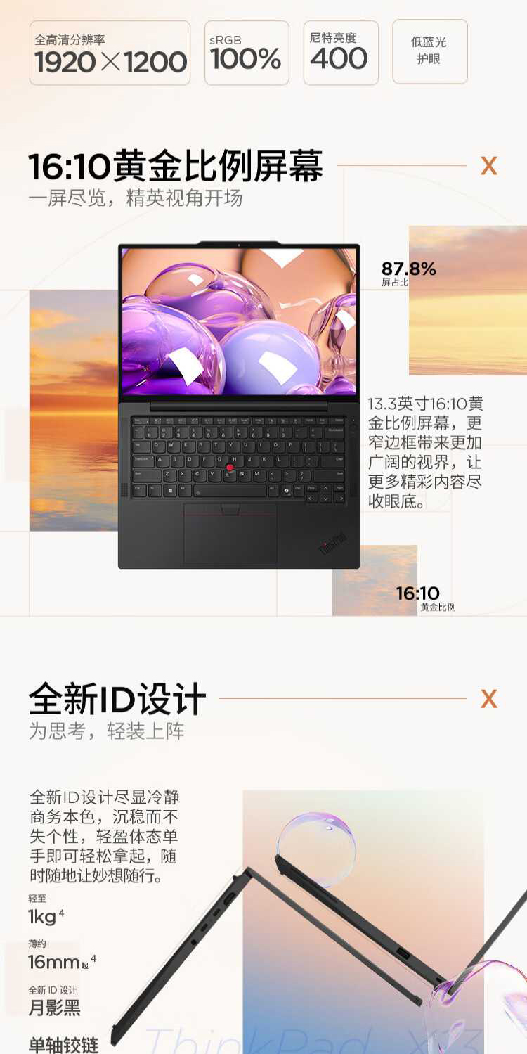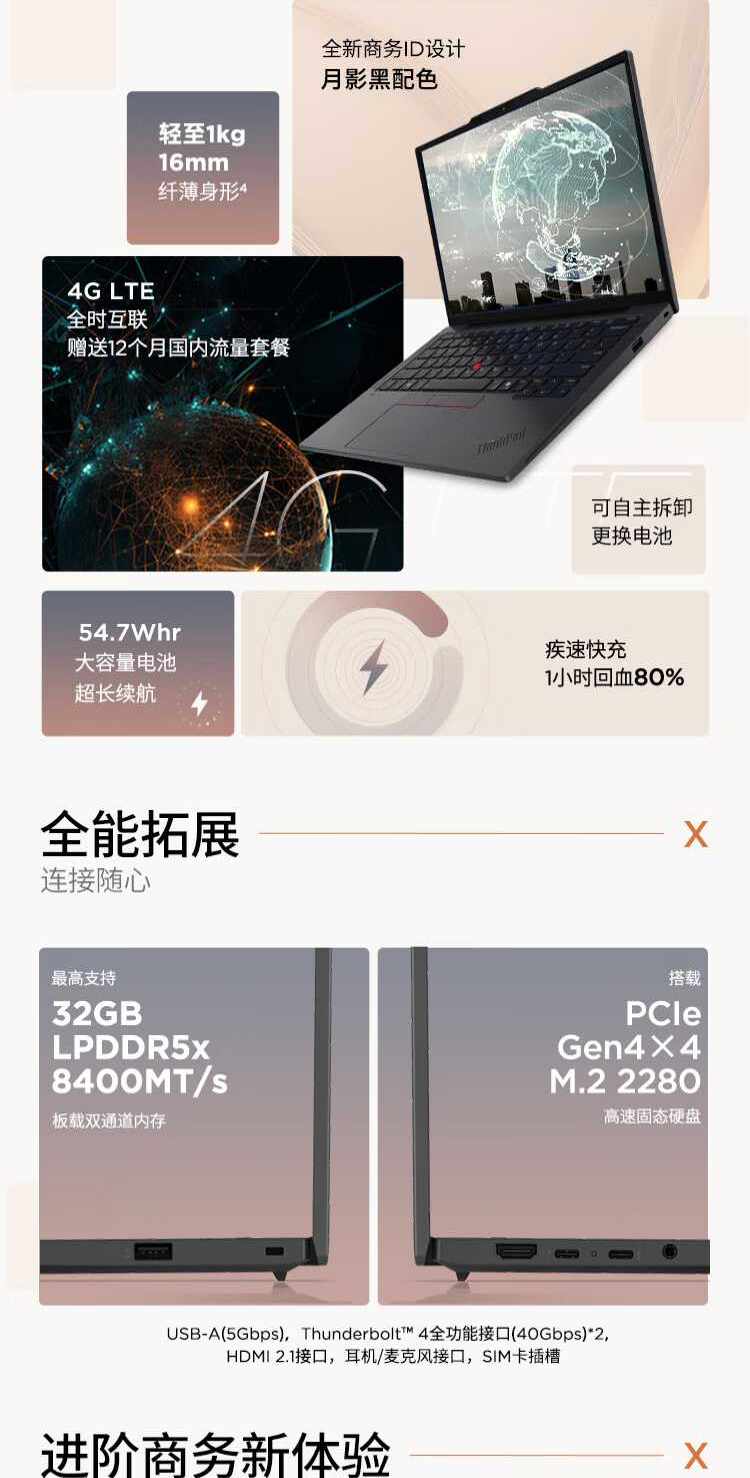 X13-8CD | Ultra7-155H/32G/1TSSD/13.3"WUXGA/Win11+Office/WiFi6+4G/BT5.3/54.7Whr/2Yr/指纹/红外摄像头/背光键盘 |